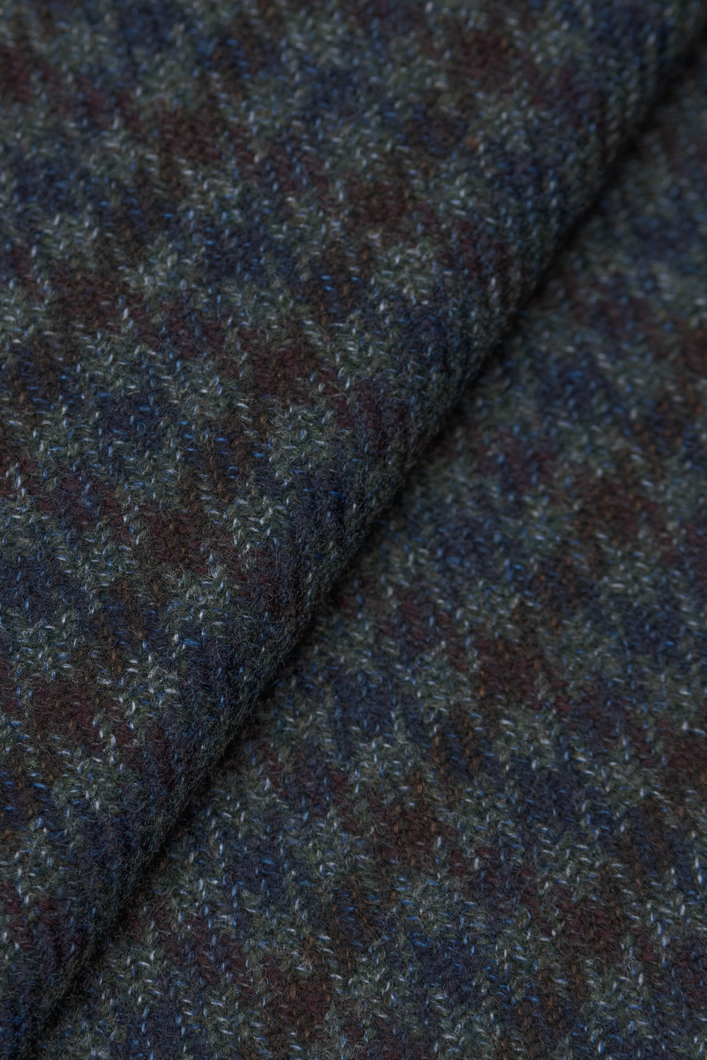 This luxury jacket for fall is made of blend of wool, silk and cashmere woven by the esteemed Ermenegildo Zegna mill in Italy. The multi-colored check pattern includes green, blue, grey, and a rich bordeaux. Zegna's superfine Trofeo wool is known for its longer and more elastic fibers that make garments smoother and more comfortable. Fully lined in our popular B-fit, these jackets were made in Rochester, NY in the factory that originally made Hickey Freeman. The last of an era.