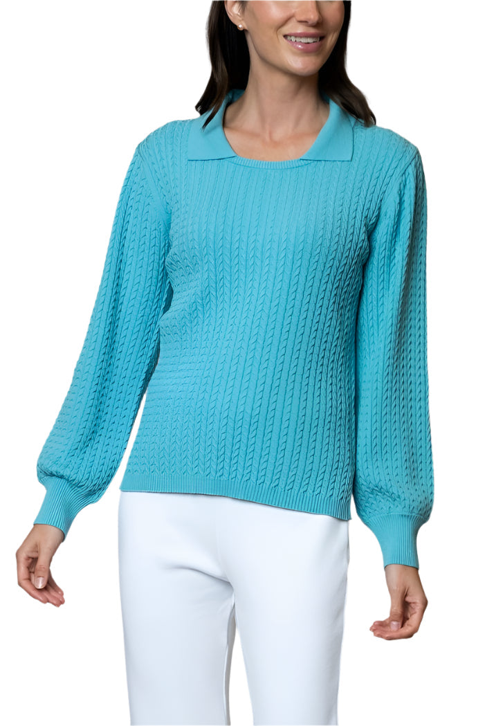 Long Sleeved Crew-Neck Cable-Knit Top; Modal Blend