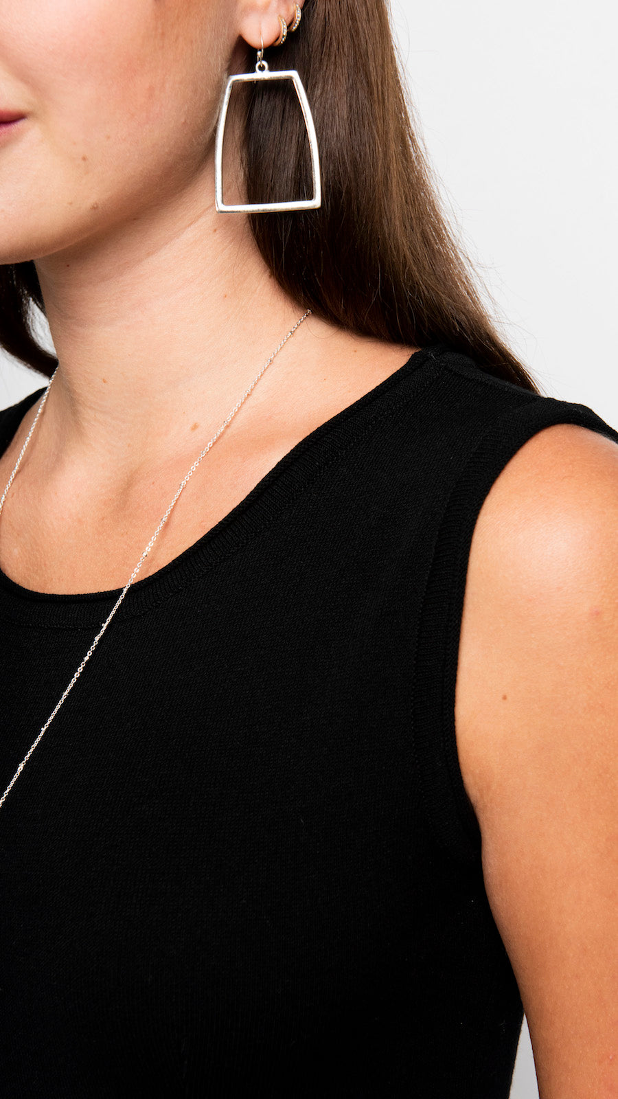 Milano knit sleeveless sheath dress; Round neck; Above knee; Darts accentuate the waist line and enhance the shape; Can be worn on its own or with a Simona or Sabrina mesh dresses on top;  Made of light weight supple viscose blend;