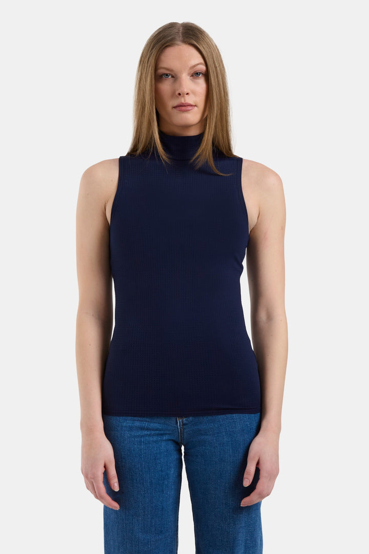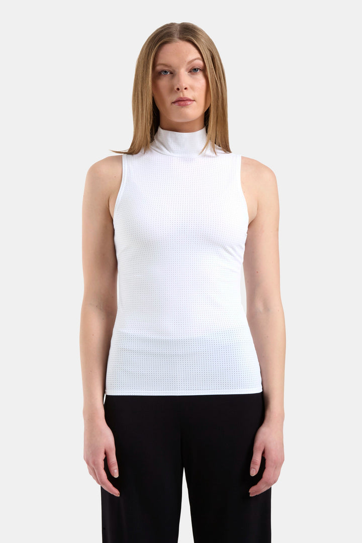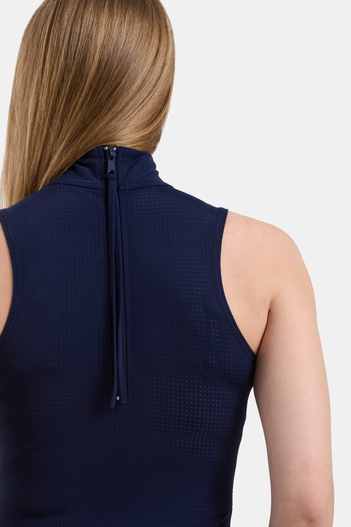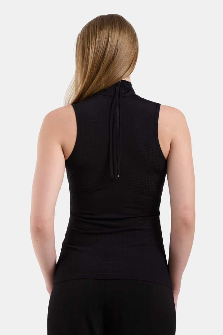 Elevate your wardrobe with The Palma Top—a high-neck sleeveless essential designed for understated elegance. Crafted from breathable, performance-inspired fabric, this fitted silhouette balances modern edge with effortless sophistication. The Palma is a versatile piece, ideal for layering or as a sleek standalone statement in any capsule wardrobe.