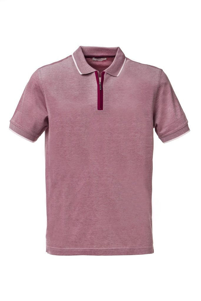 Cotton Polo with Contrast Zipper and Trim