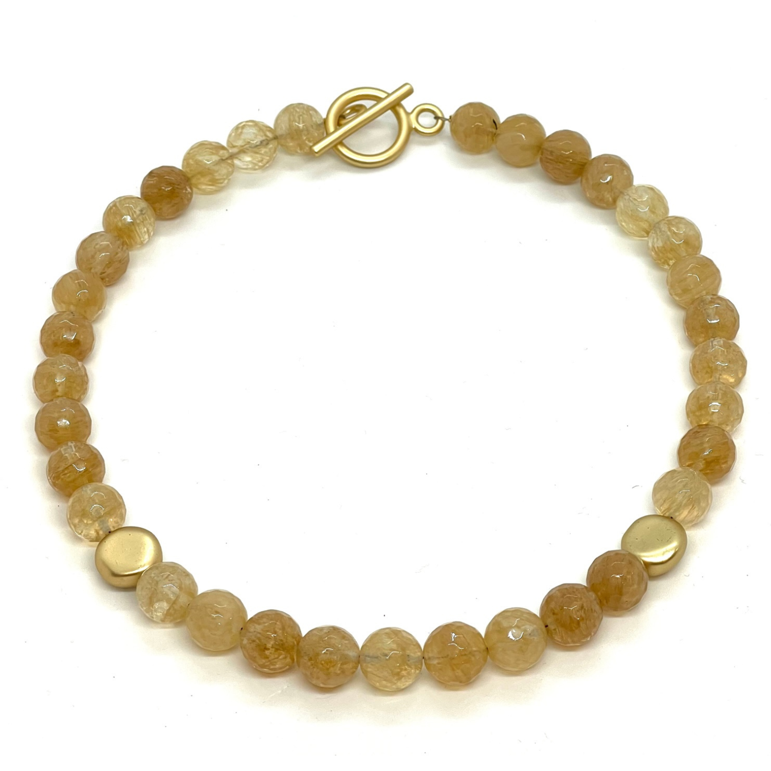 Citrine Quartz With Matte Gold Flat Bead Necklace