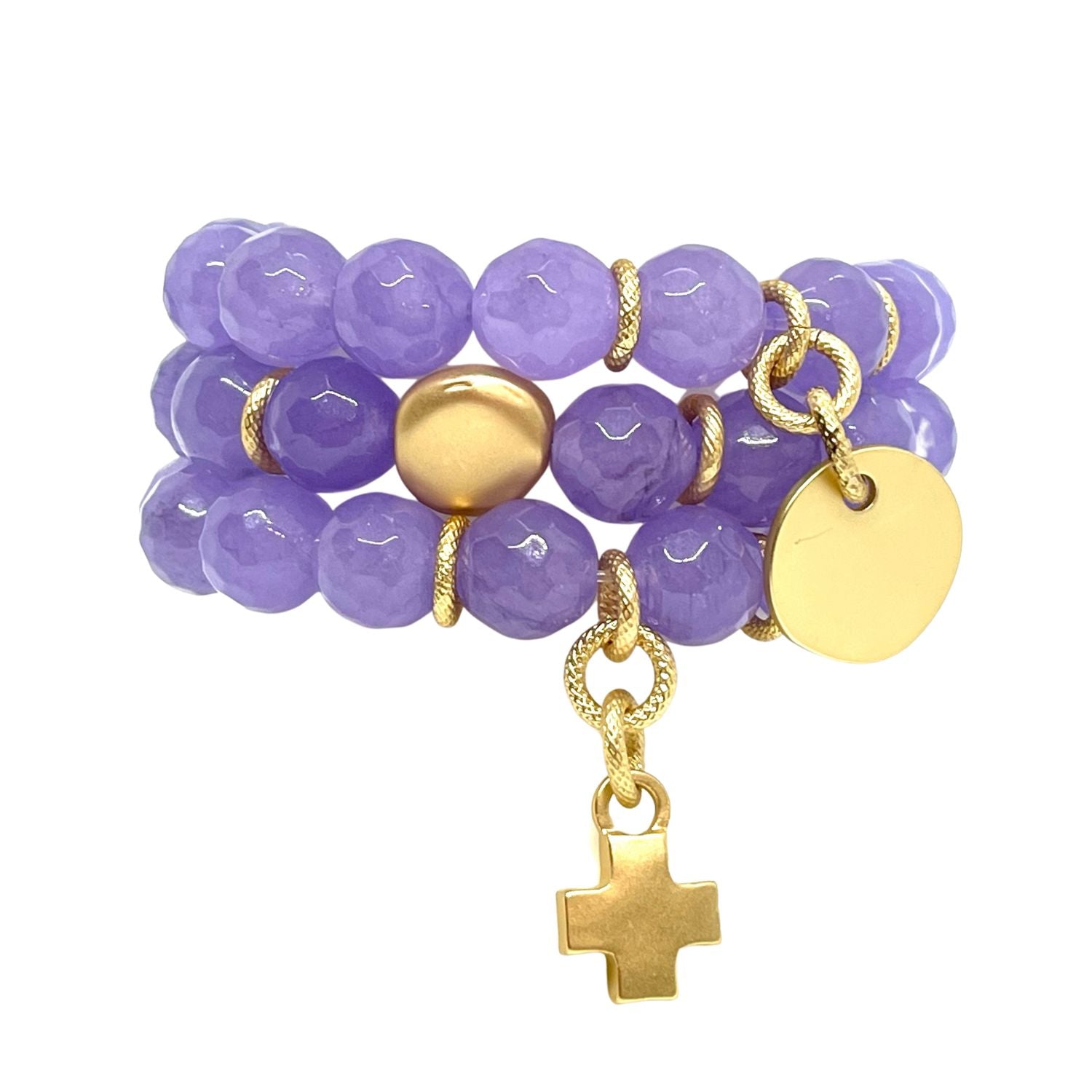 Lavender Jade Stretch Bracelet With Matte Gold Nugget