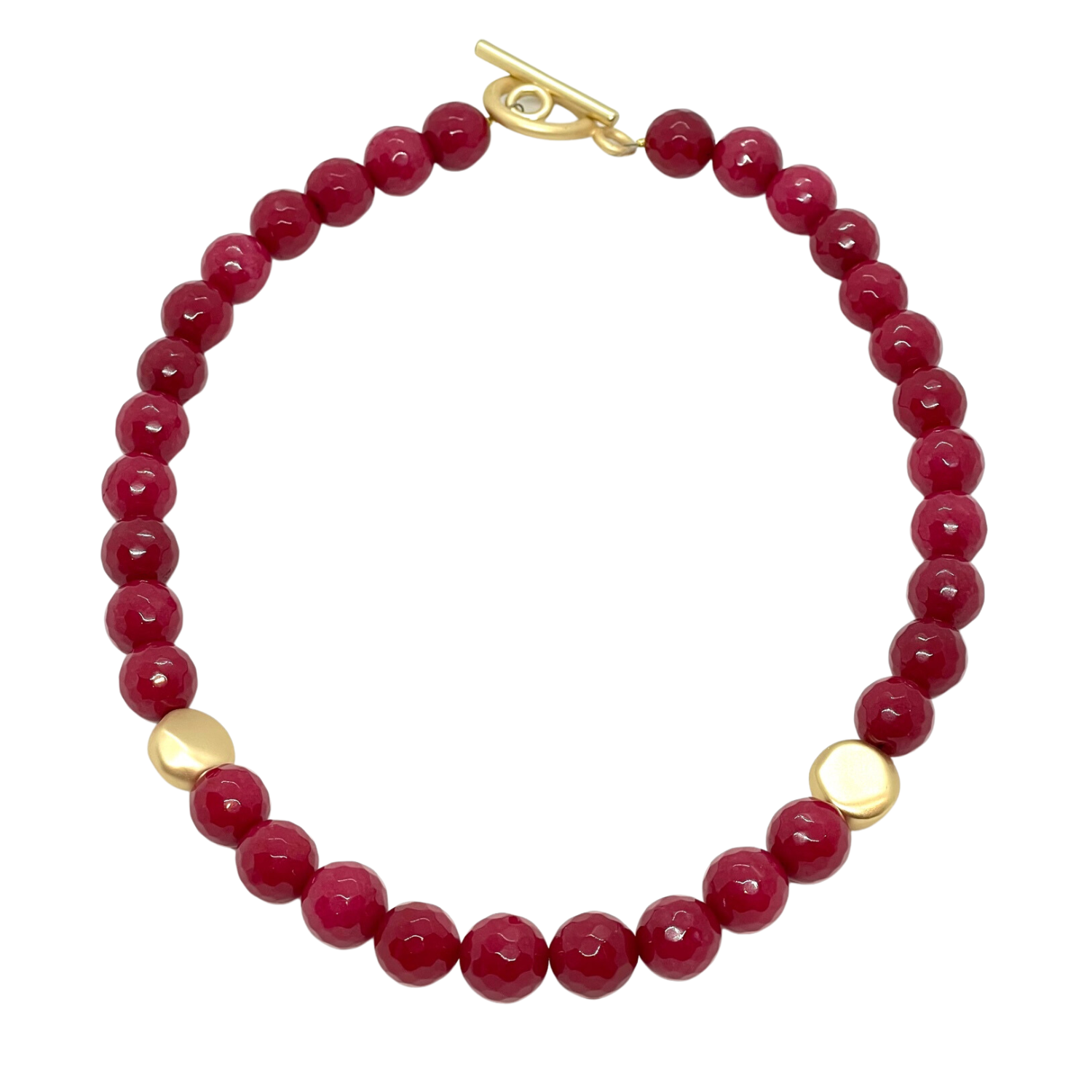 Red Jade Necklace With Matte Gold Flat Bead Accents