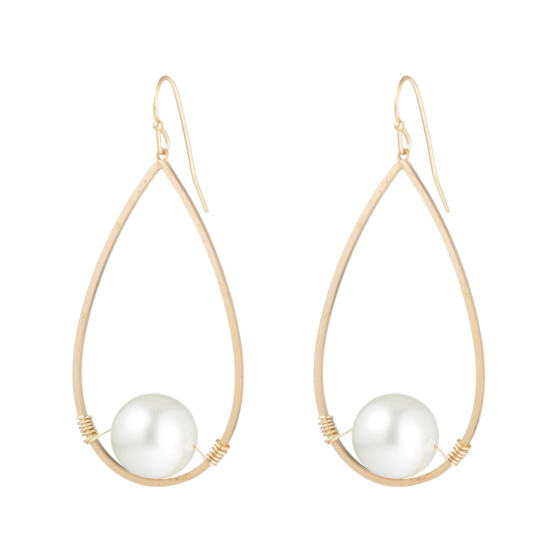 Glass Pearl Matte Gold Teardrop Wrap Earrings