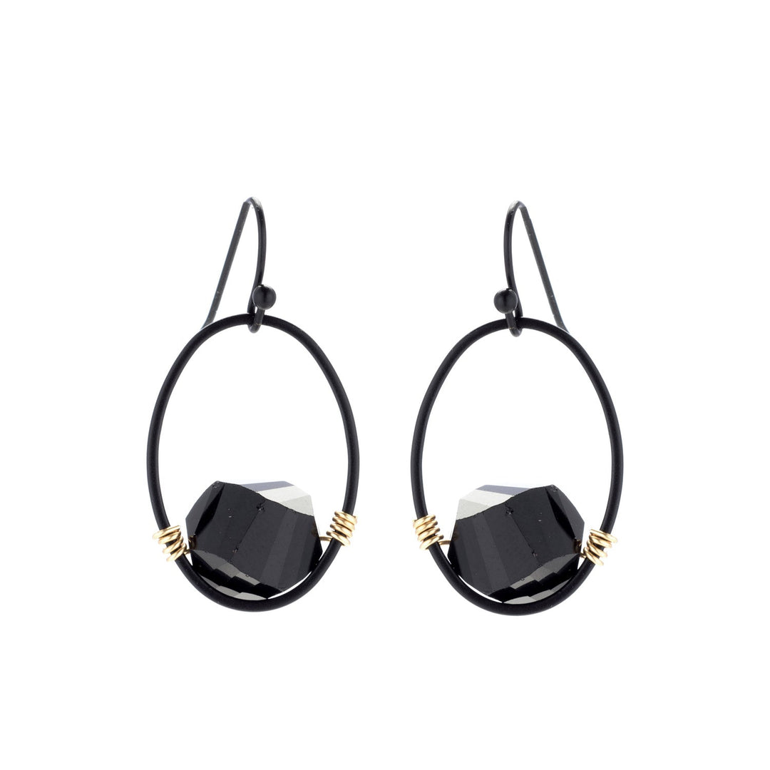 Black Faceted Crystal And Matte Black Oval Earrings