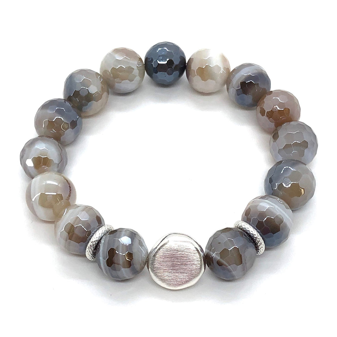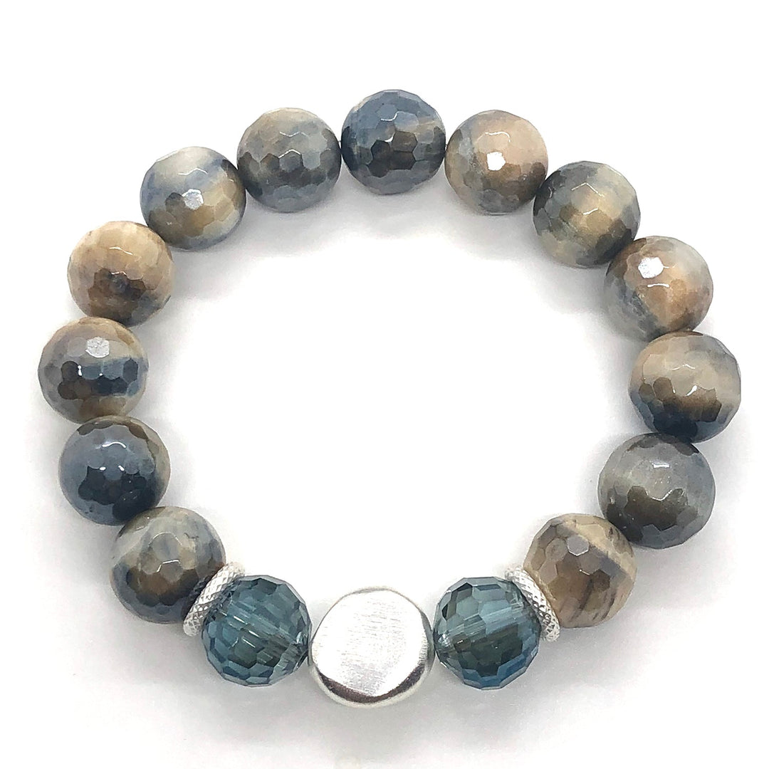 Mocha Glazed Agate With Matte Silver Charm Stretch Bracelet