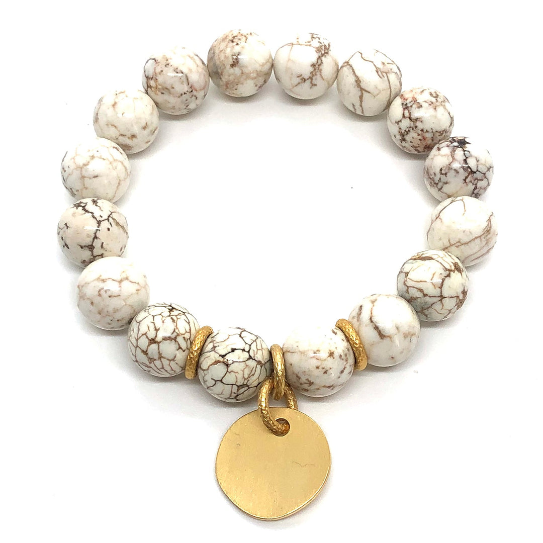 White Magnesite Matte Gold Charm Stretch Bracelet