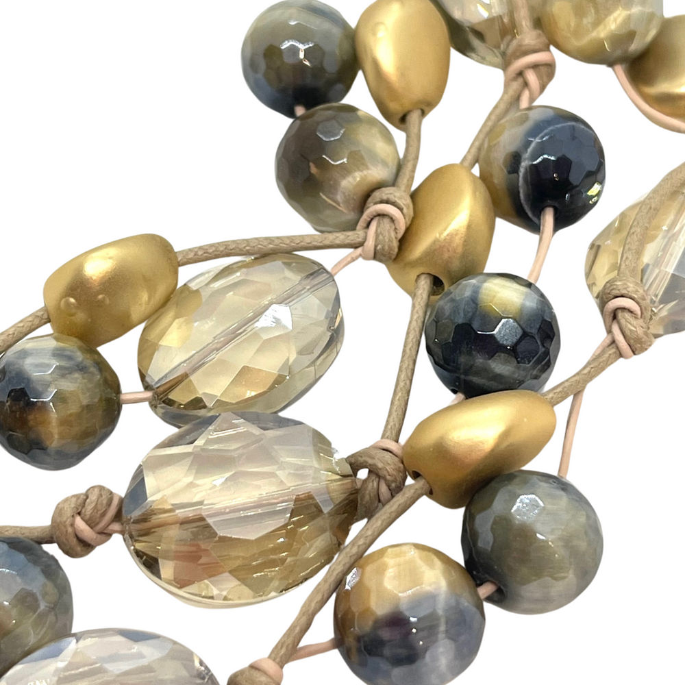 Blue Cream Tigers Eye and Champagne Crystal Torsade Necklace
