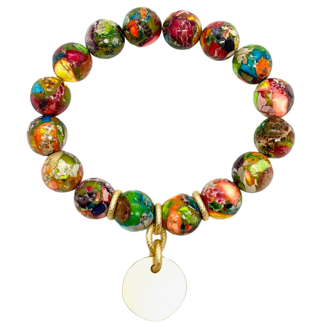 Confetti Jasper Stretch Bracelet With Matte Gold Charm Accent