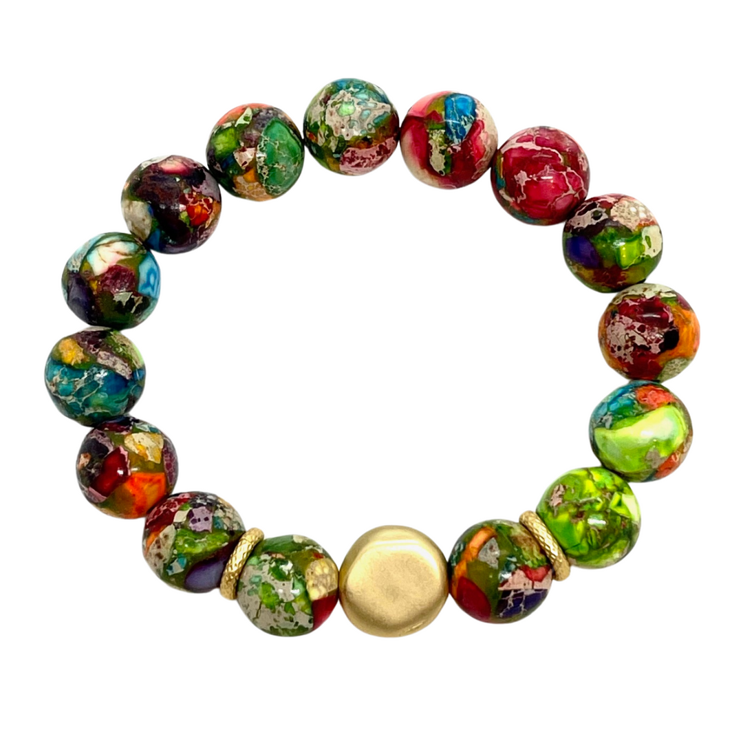 Confetti Jasper Stretch Bracelet With Matte Gold Nugget