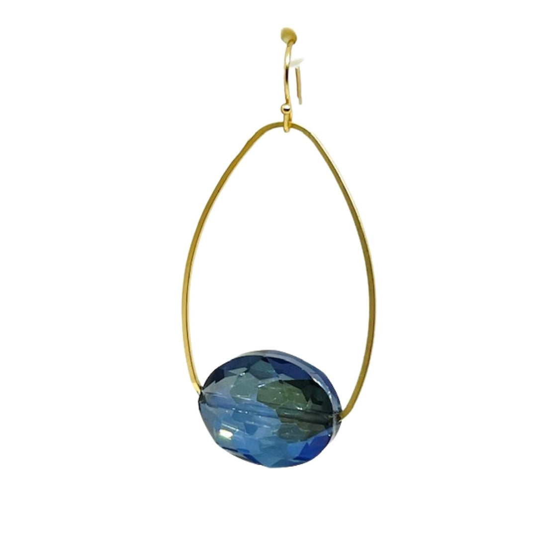 Blue Crystal Nugget in Matte Gold Inset Oval Earrings