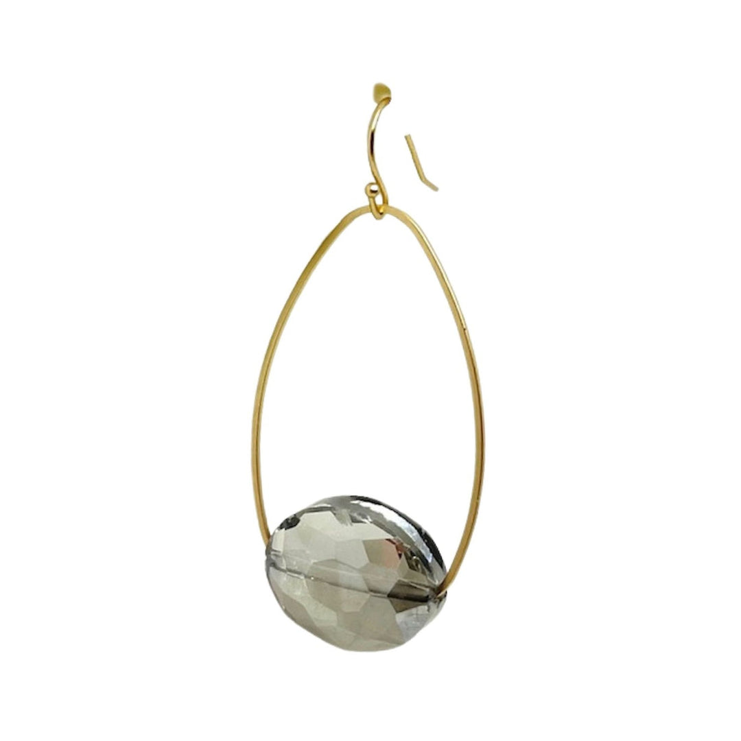 Matte Gray CrystaL Inset Matte Gold Oval Earrings
