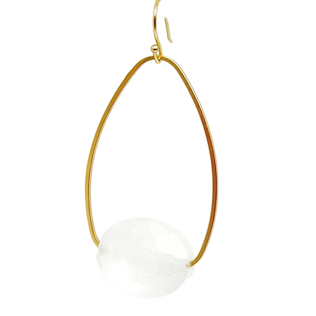 Matte White CrystaL Matte Gold Inset Oval Earrings