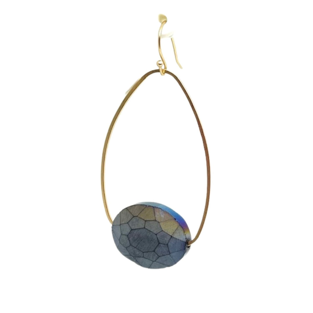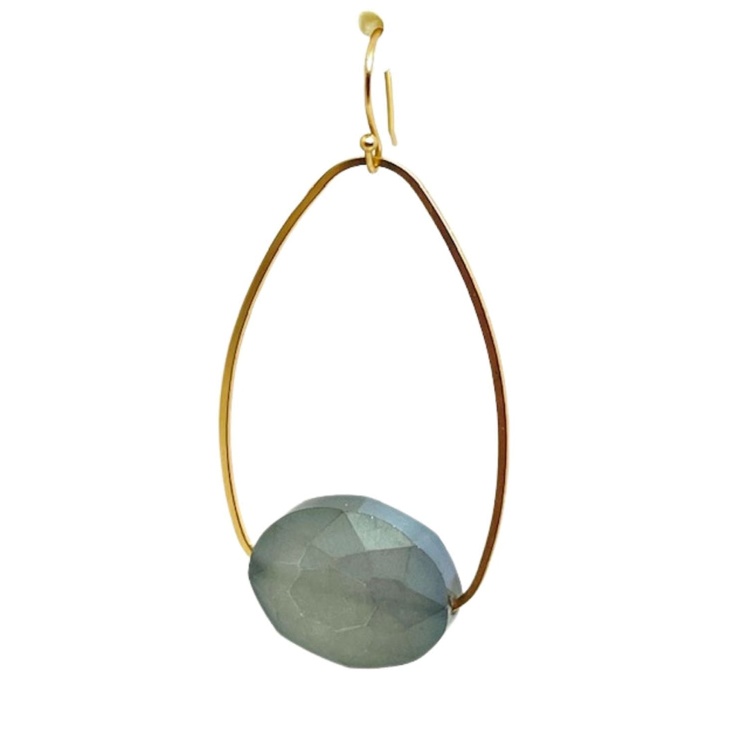 Green Aqua Terra Inset Matte Gold Oval Hoop Earrings