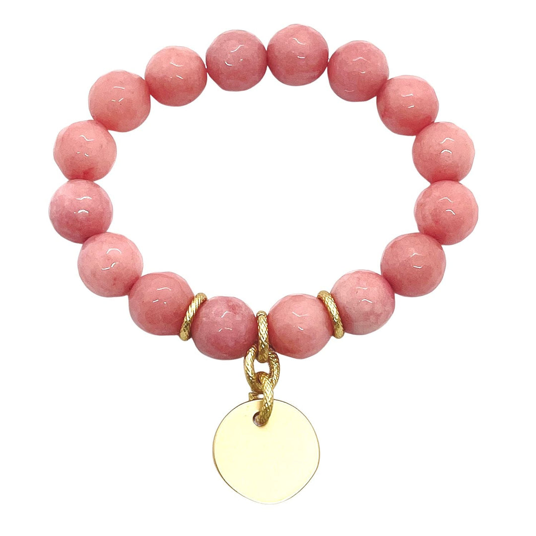 Pink Coral Jade Matte Gold Charm Stretch Bracelet