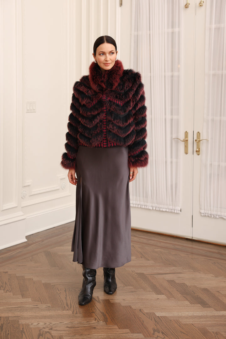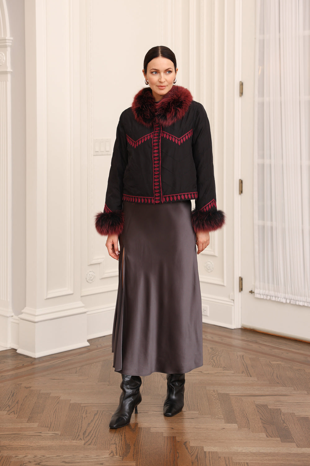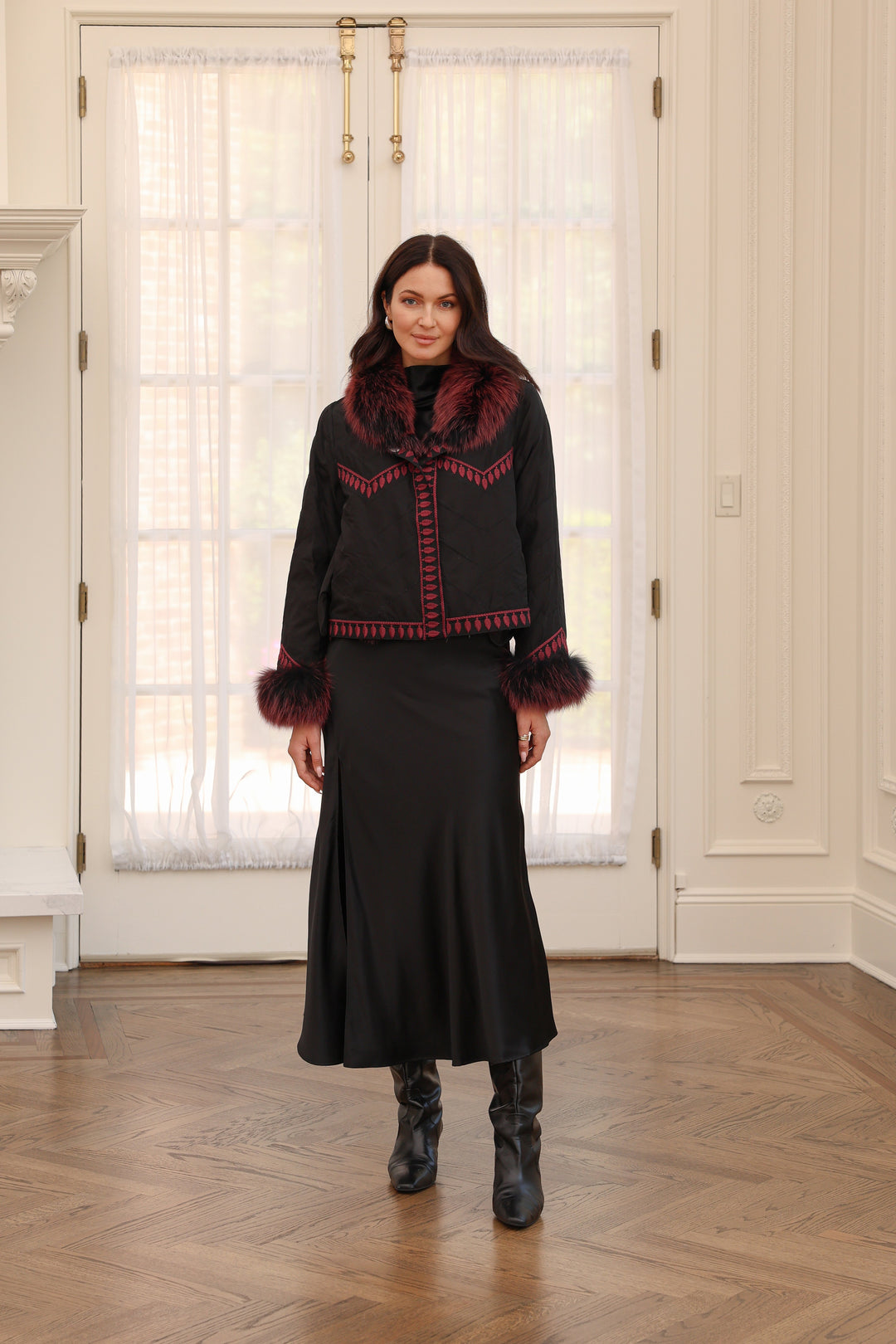 Embroidered Reversible Silk To Fox Jacket in Black Tibet