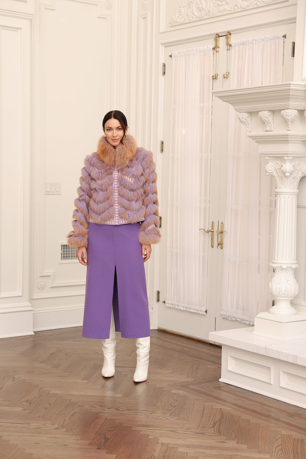 Embroidered Reversible Silk to Fox Jacket in Lavander Sorbet