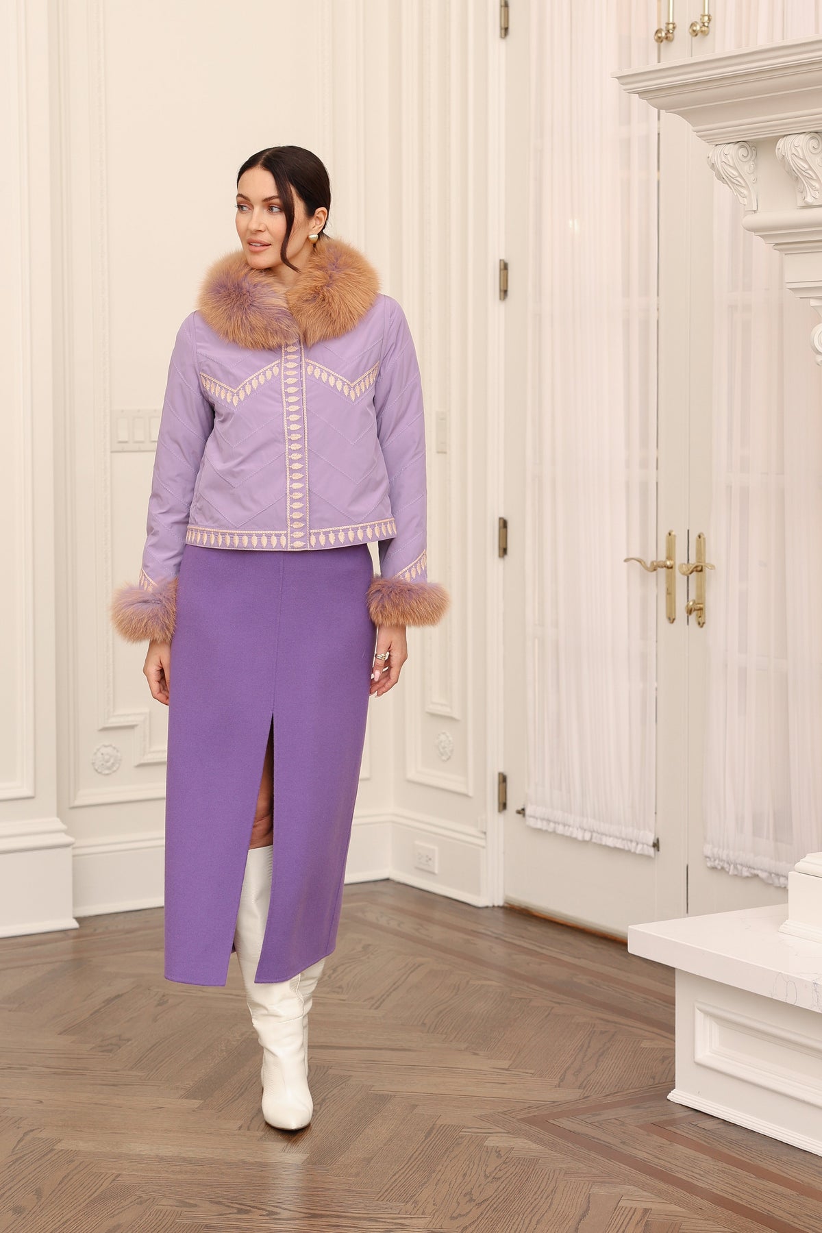 This sleeveless gilet offers a bold style with a feminine touch. Crafted from fox fur with silk fabric, it is incredibly lightweight, comfortable, and breathable. The design features a detachable collar for added versatility, along with embroidered details, a cropped cut, and snap fastening, contributing to its sleek, modern silhouette. Easy to wear and pair with various outfits, this feather gilet is versatile enough to be styled both sophisticatedly and casually.