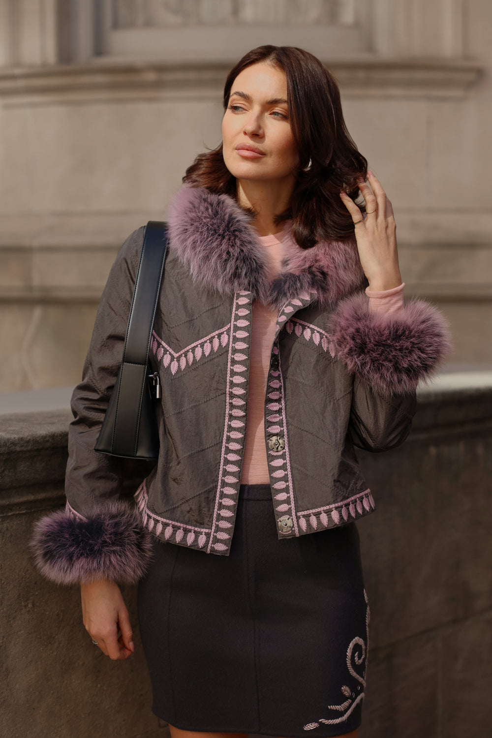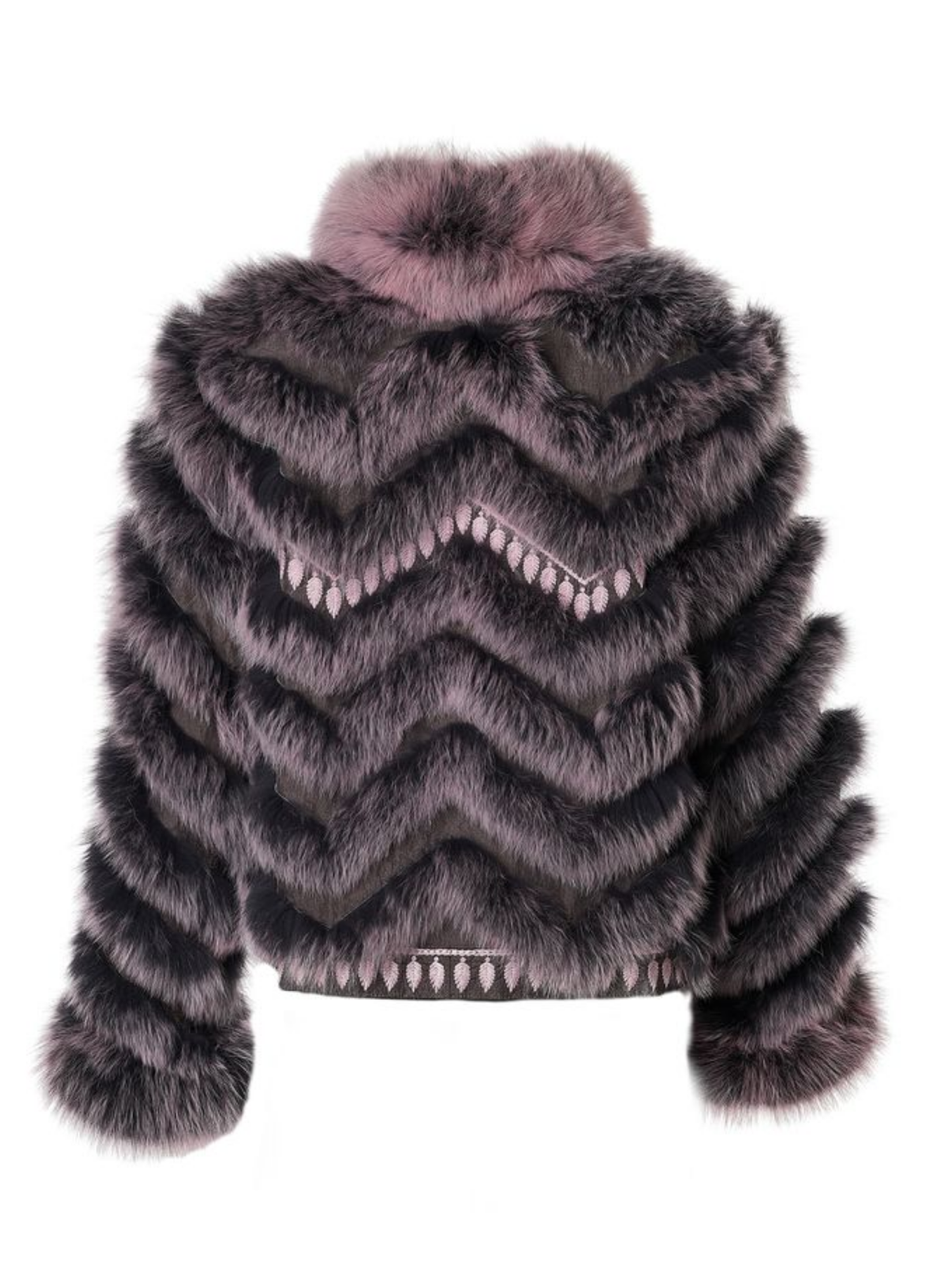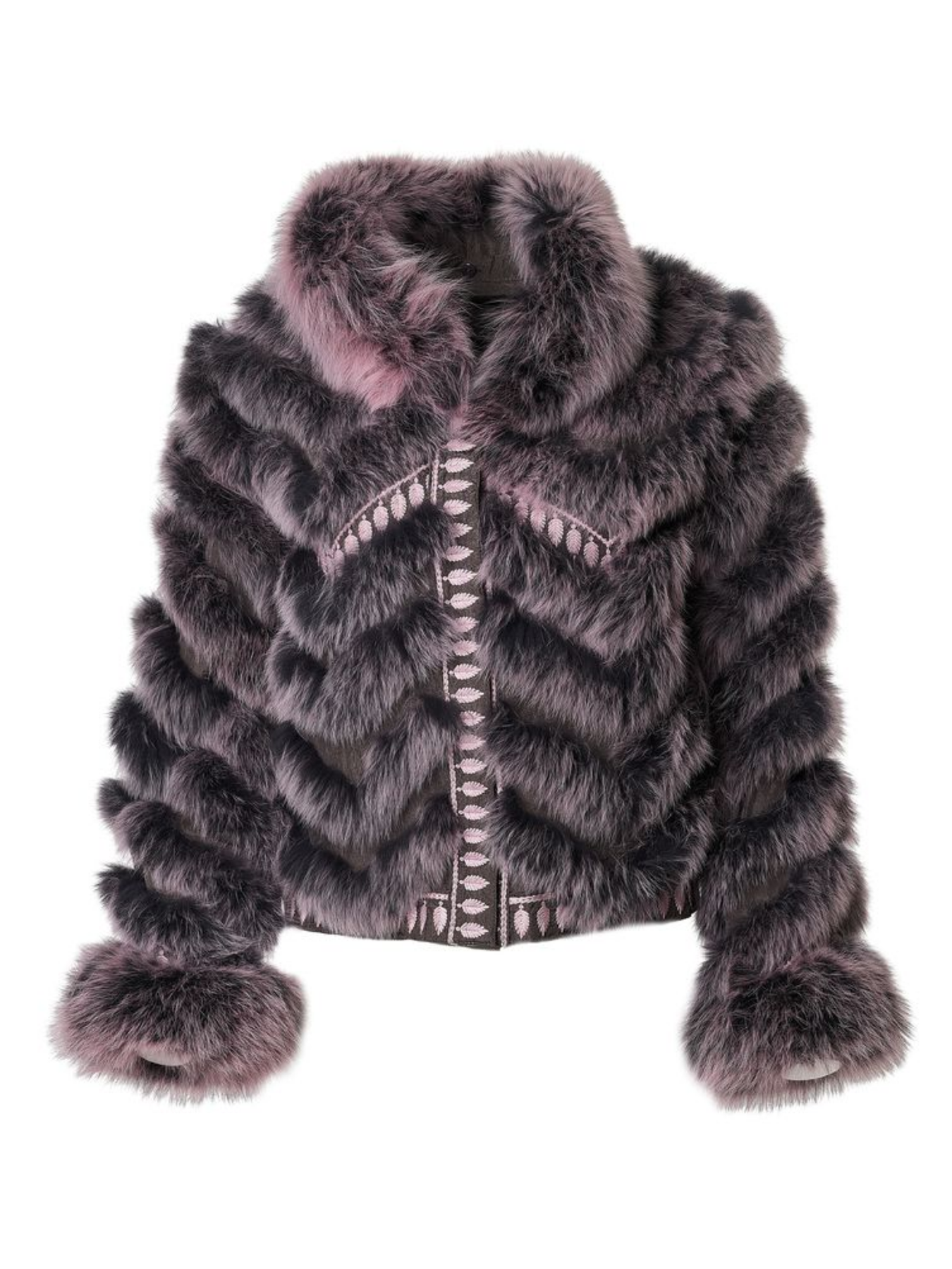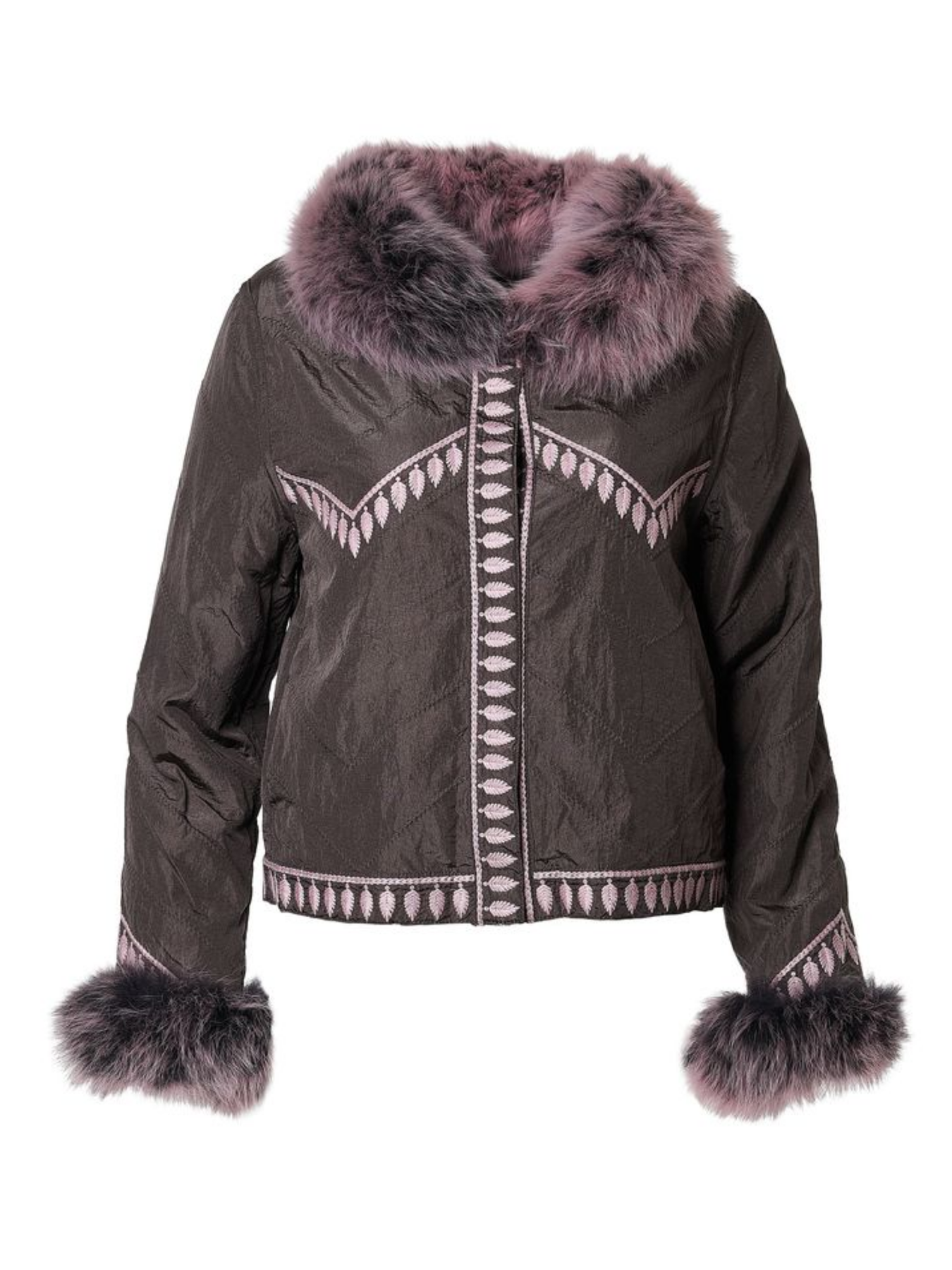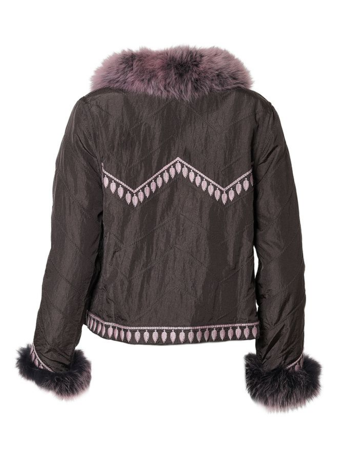 Embroidered Reversible Silk To Fox Jacket in Smokey Rose