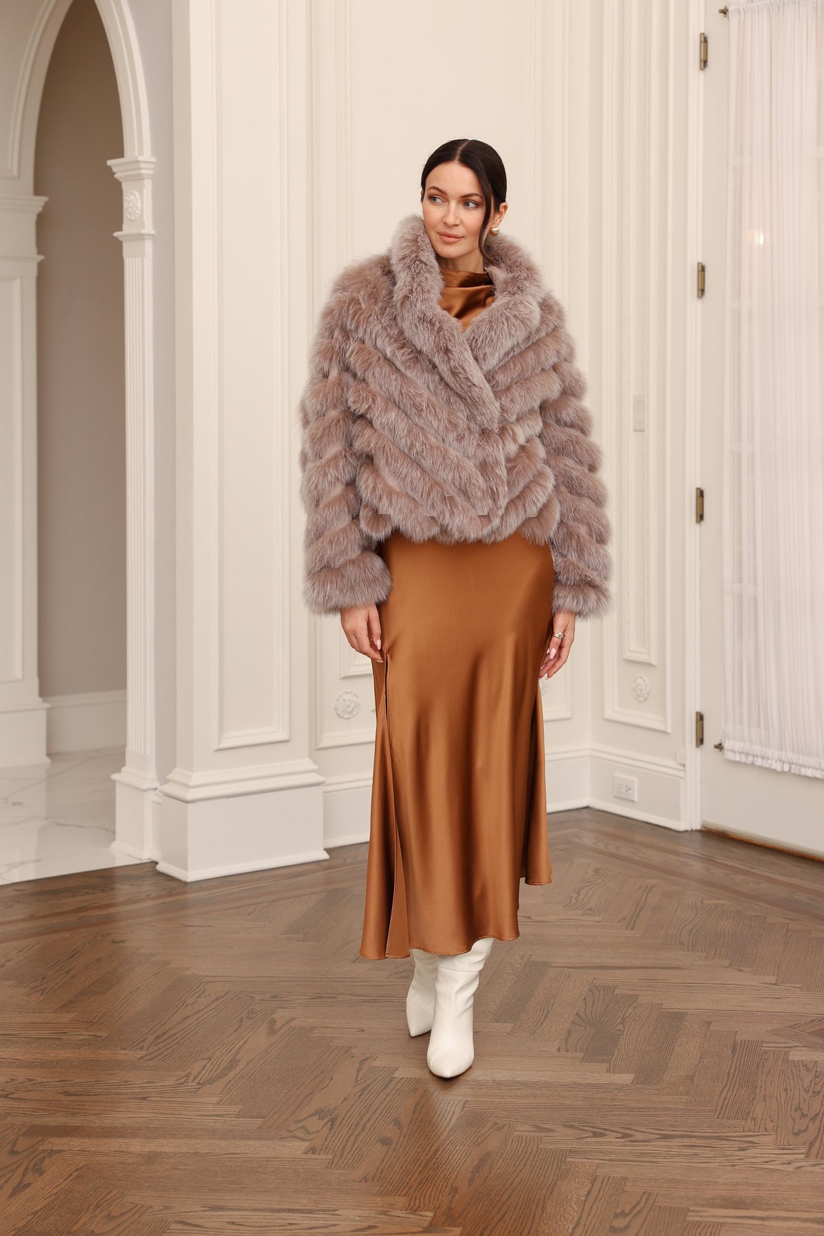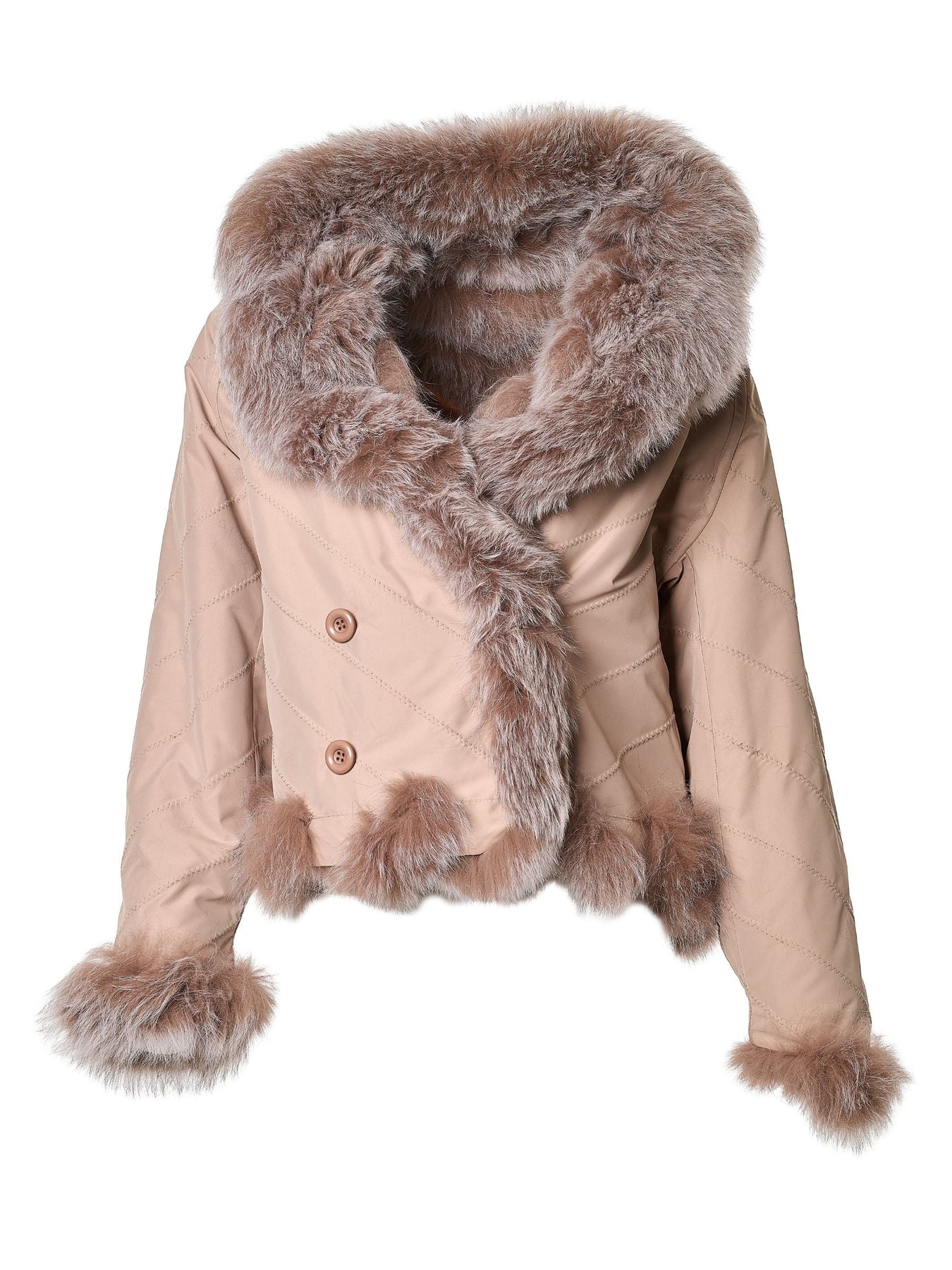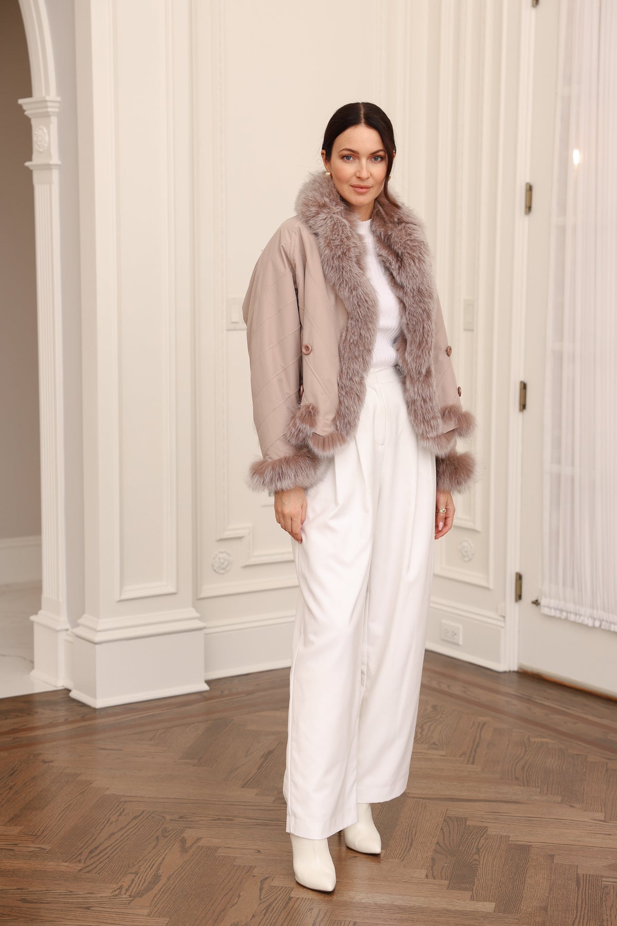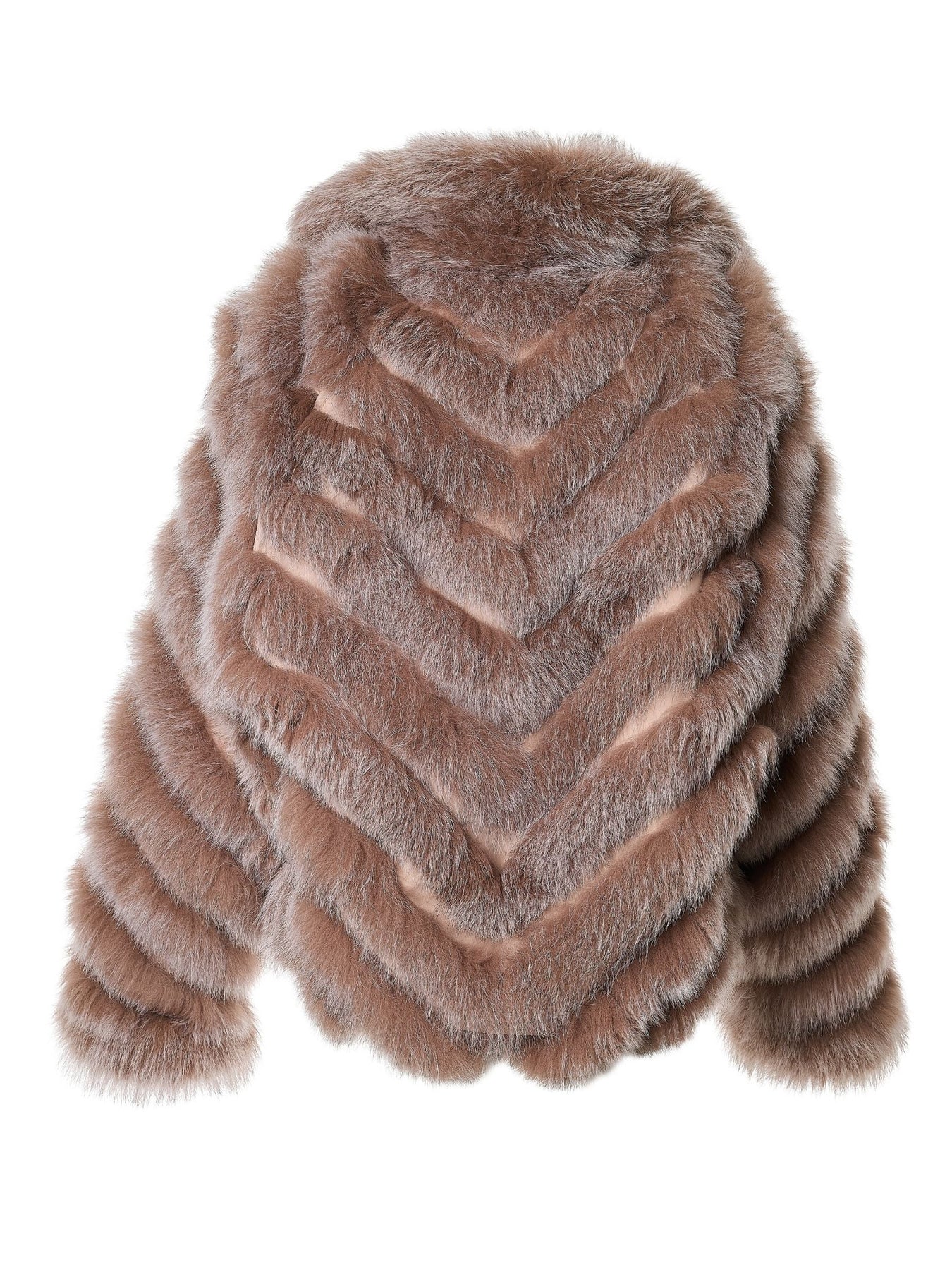 This sleeveless gilet offers a bold style with a feminine touch. Crafted from fox fur with silk fabric, it is incredibly lightweight, comfortable, and breathable. The design features a detachable collar for added versatility, along with embroidered details, a cropped cut, and snap fastening, contributing to its sleek, modern silhouette. Easy to wear and pair with various outfits, this feather gilet is versatile enough to be styled both sophisticatedly and casually.