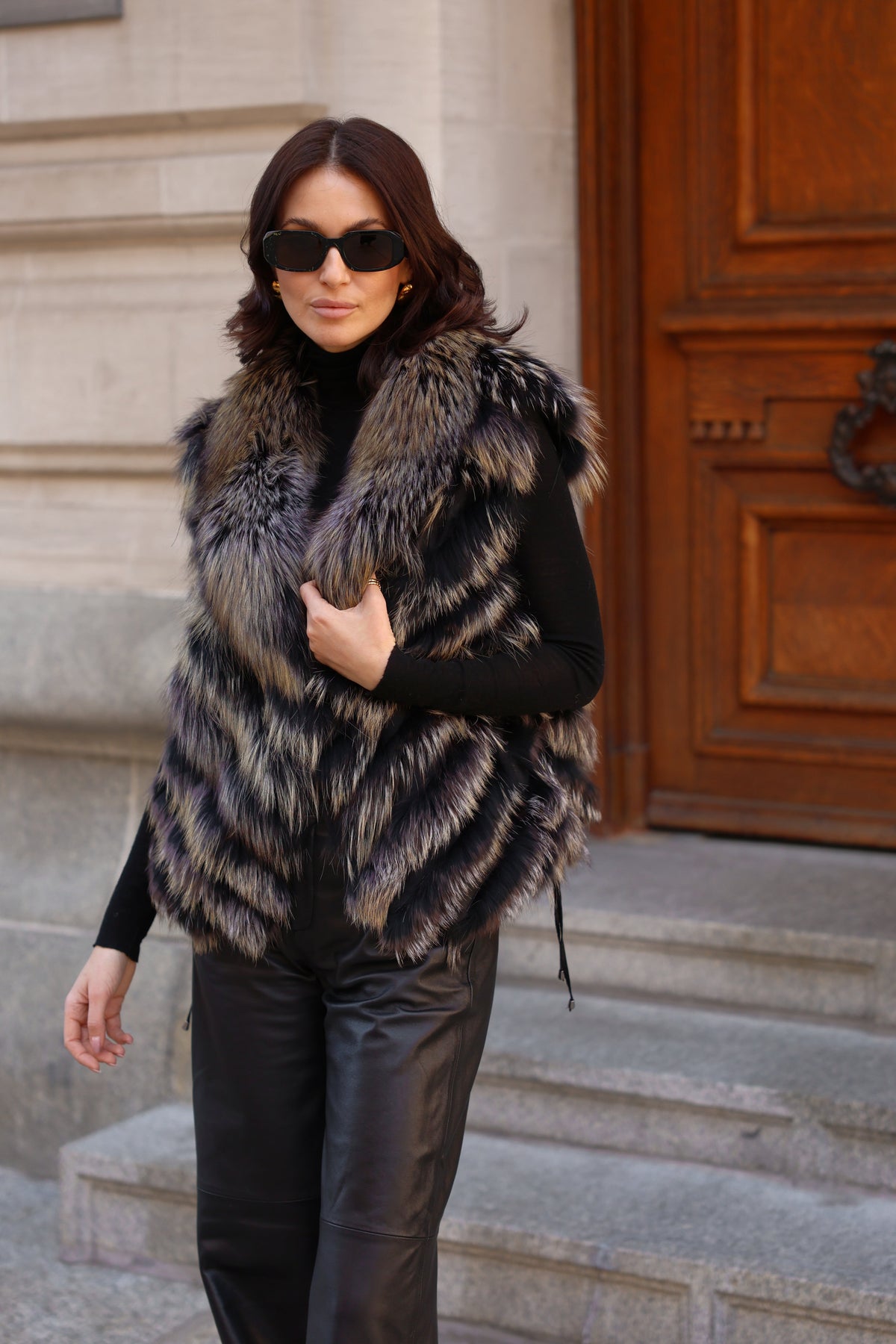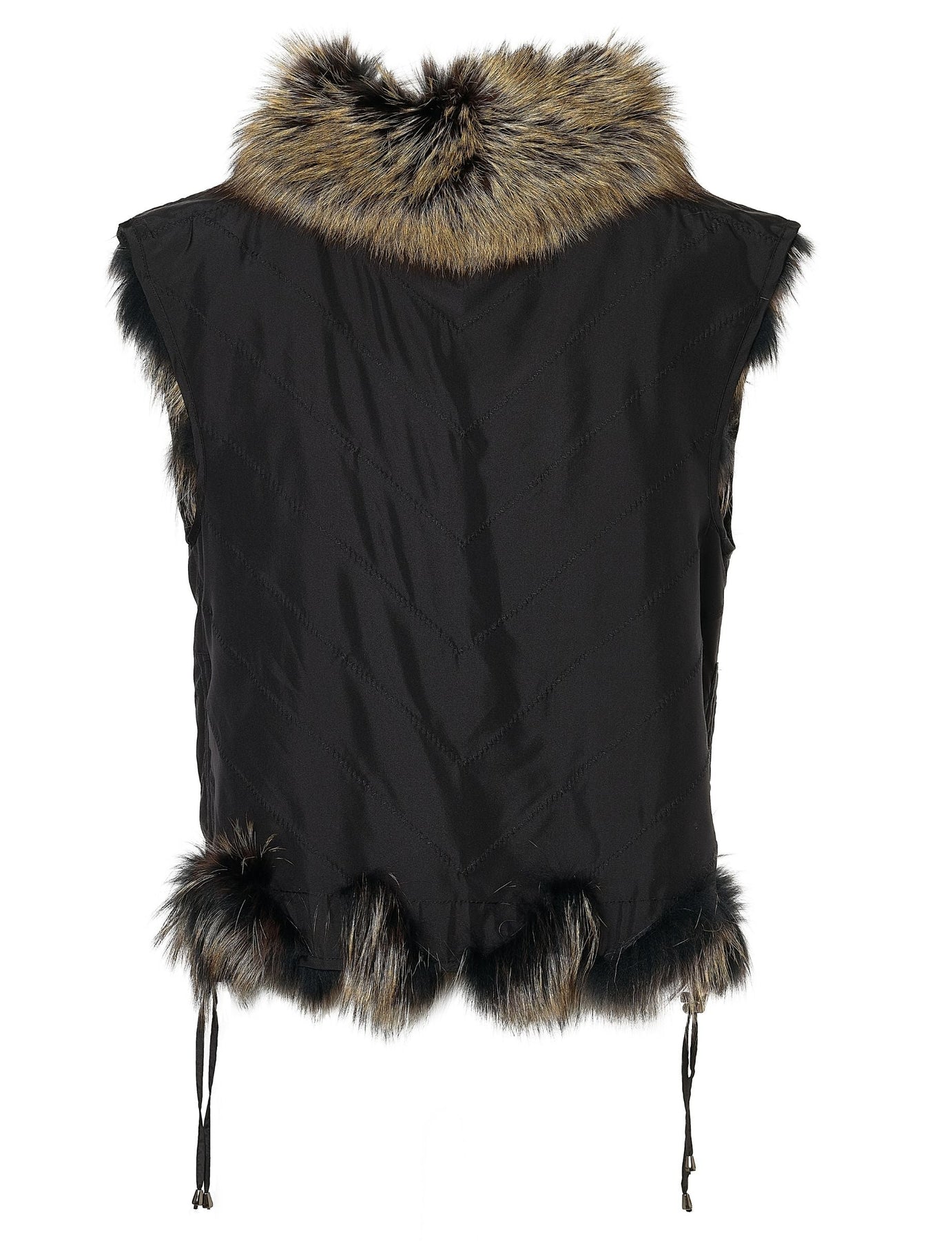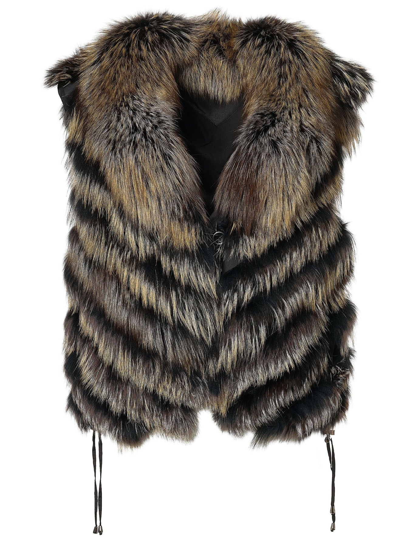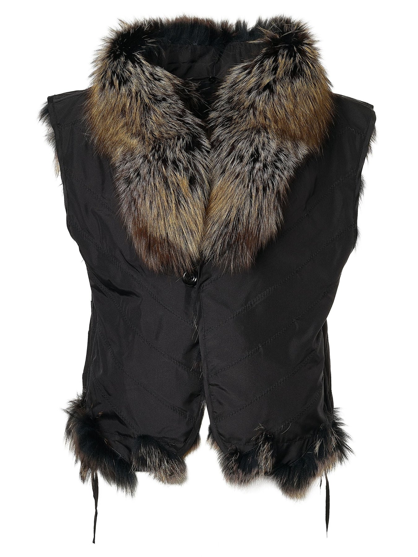 Reversible Silk to Fox Vest in Black Gold Bleach