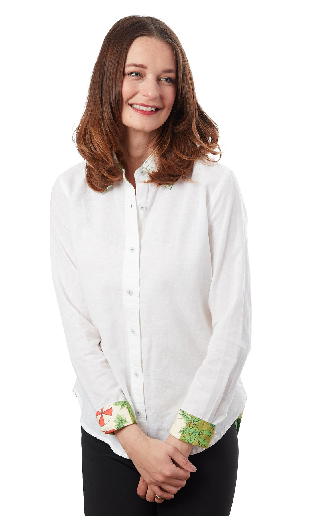 Too chic for words. White linen front and stylized swimmers on the back, so eclectic and cool. Grab one!