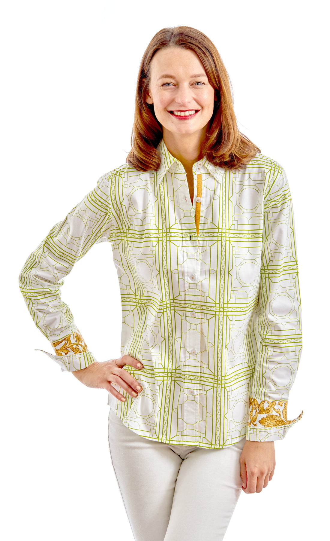 This Rome Shirt features a striking green and white architecture print, making it a unique and stylish addition to any wardrobe. The bold colors and intricate design will make you stand out and feel confident. Elevate your style with this must-have piece!