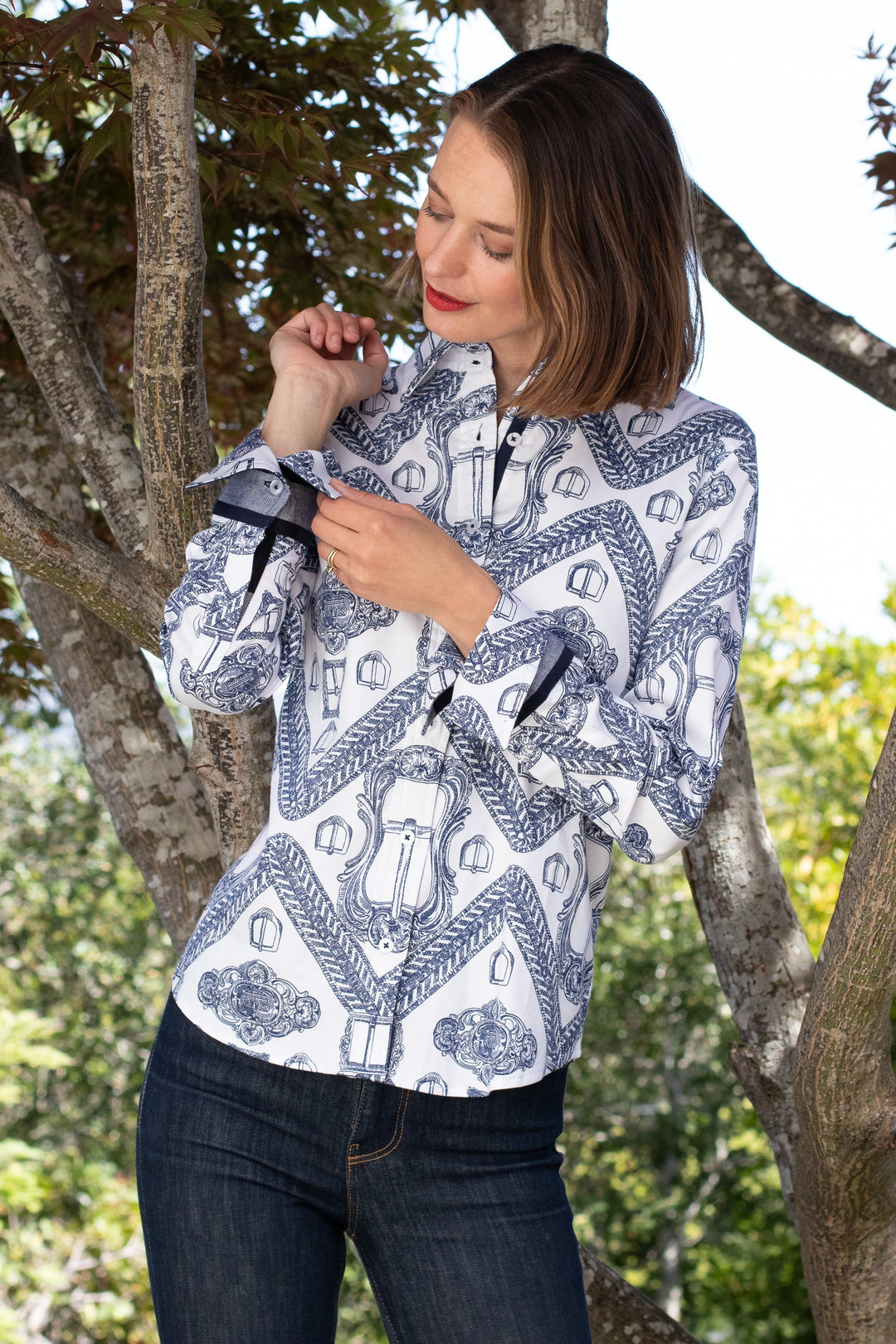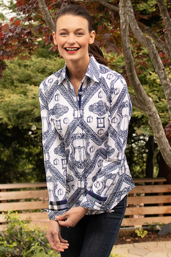 Rome Shirt with 3/4 Sleeves Cobalt Blue & White Geometric Print