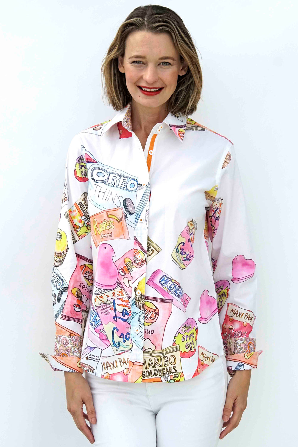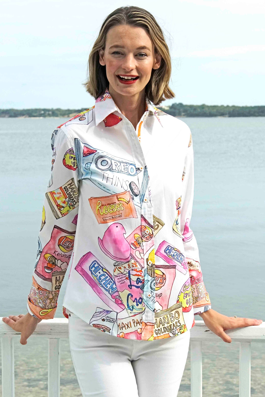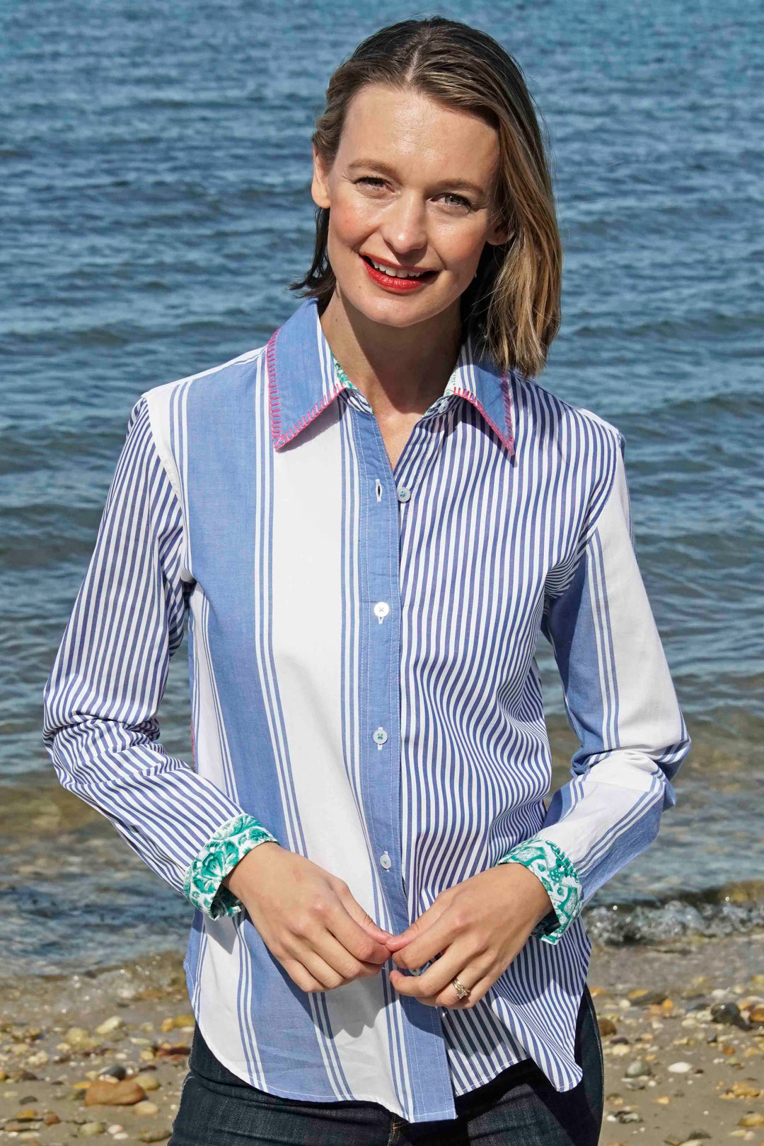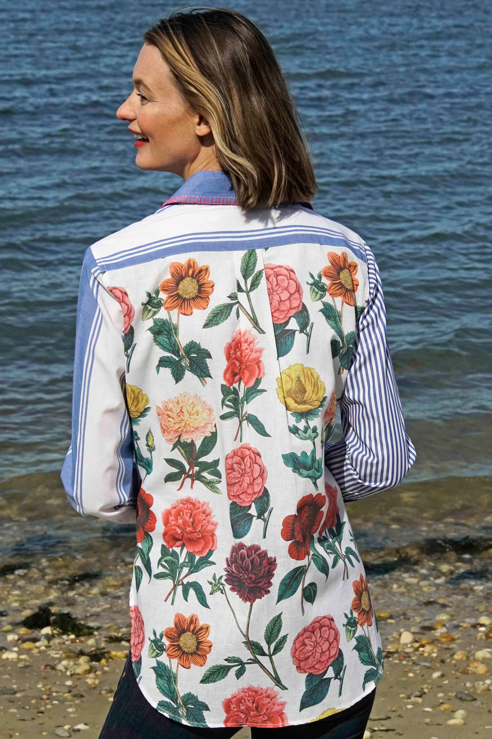 Madison Top Stripes And Flowers W Whipstitch At Collar