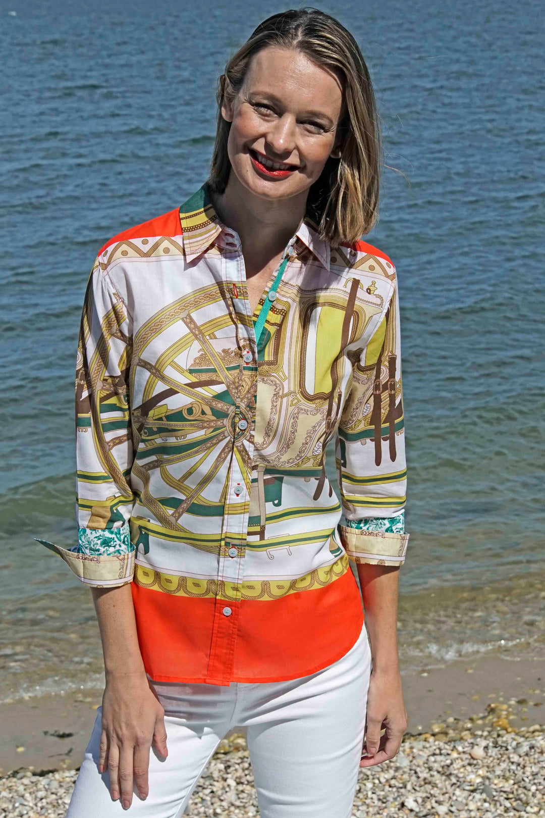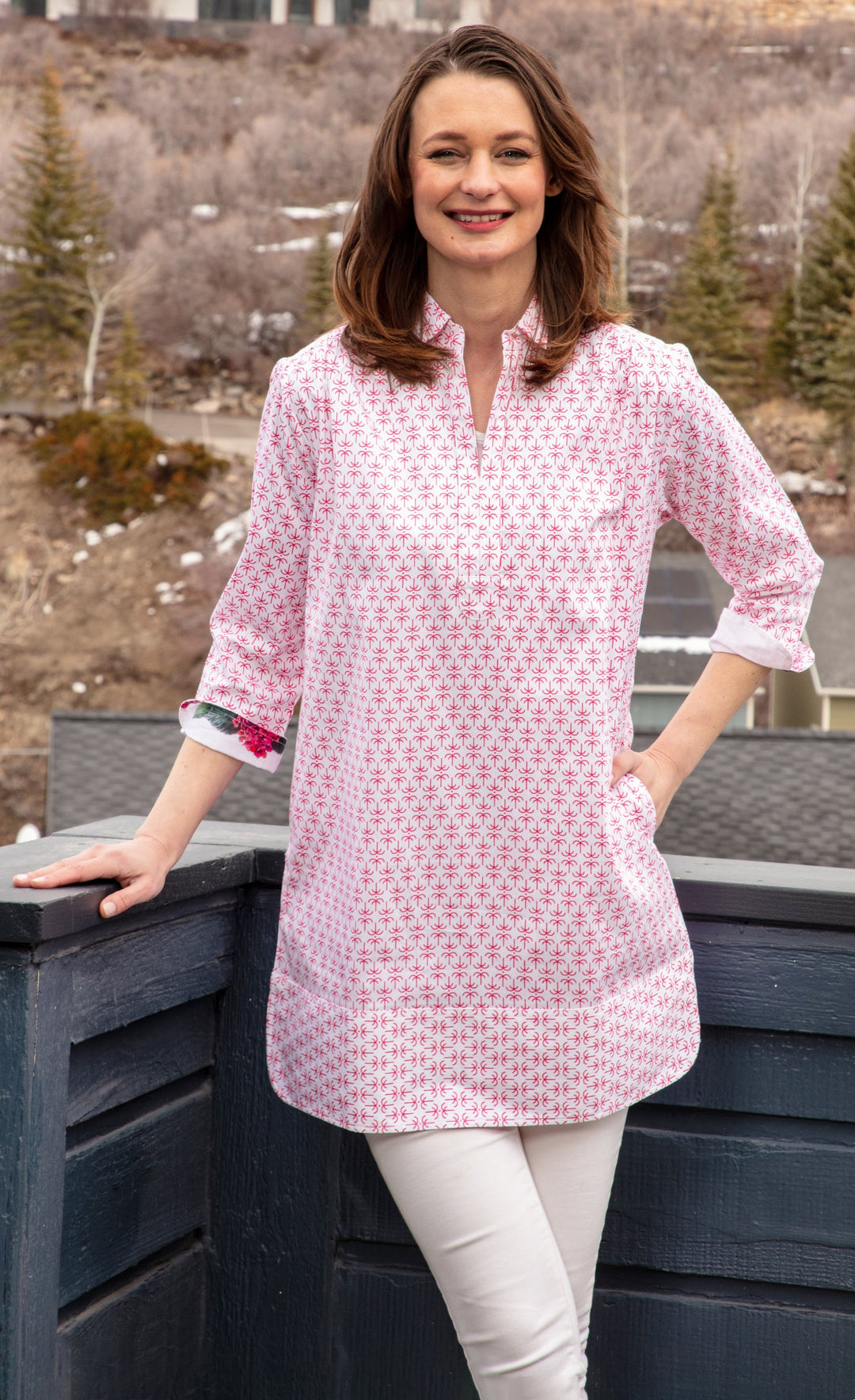Cape Cod Tunic Navy Pink with Gold Engineered