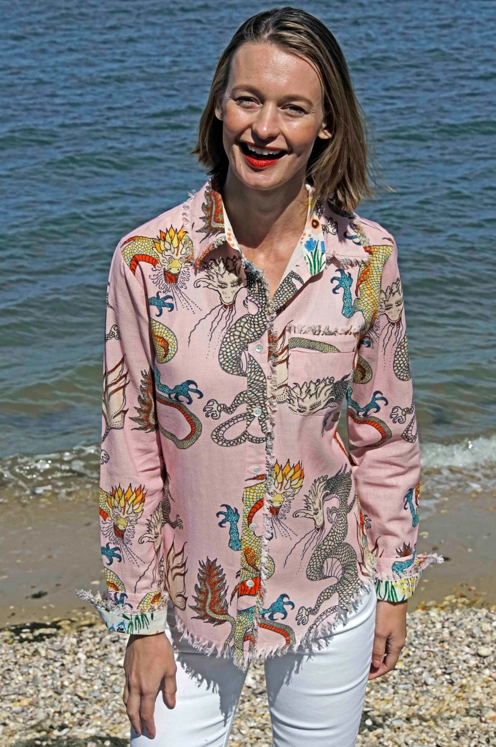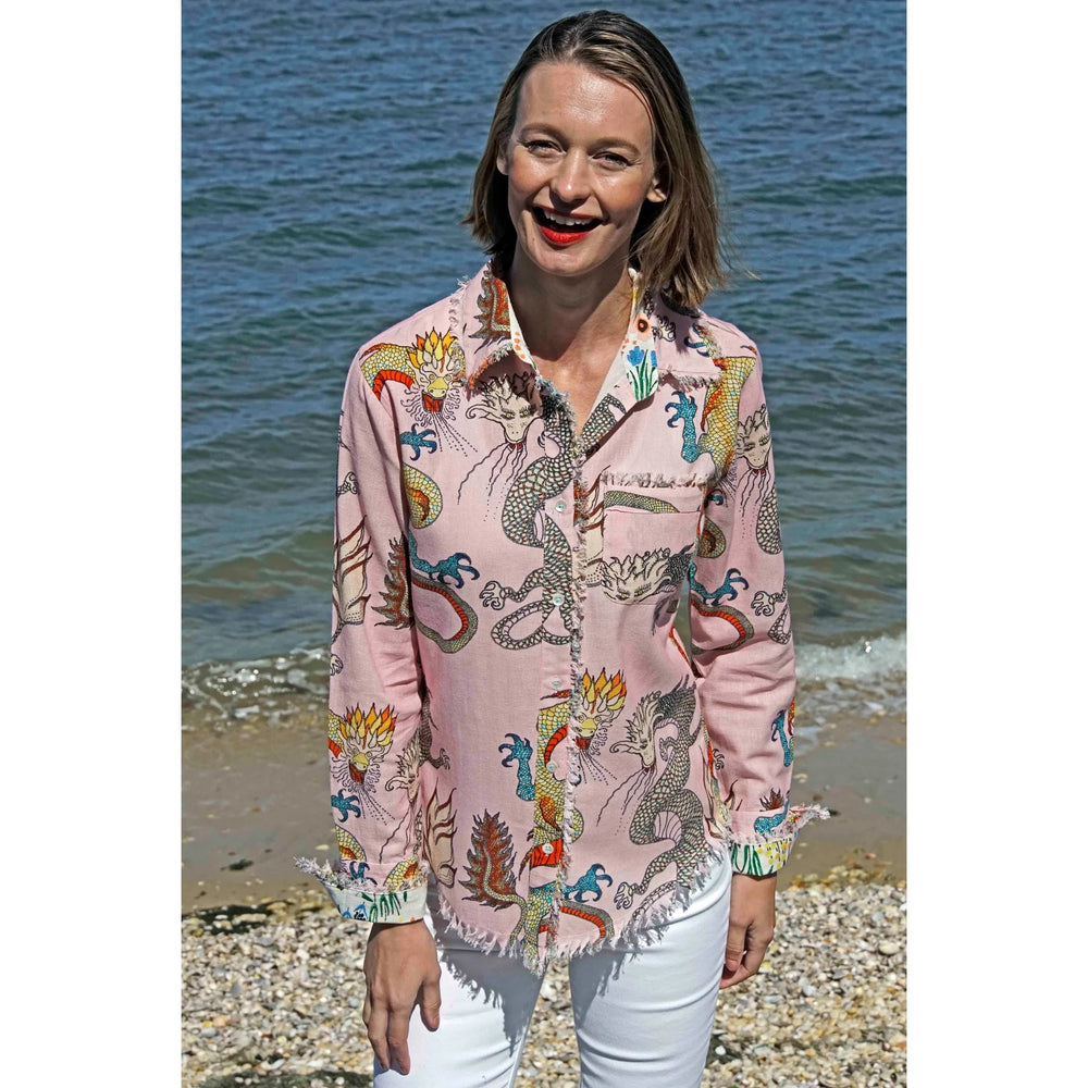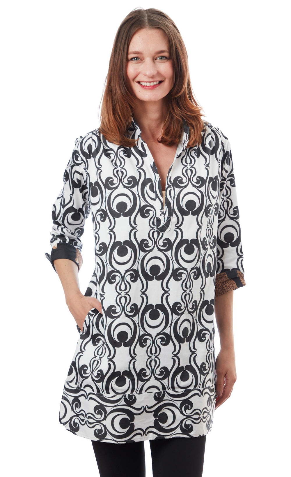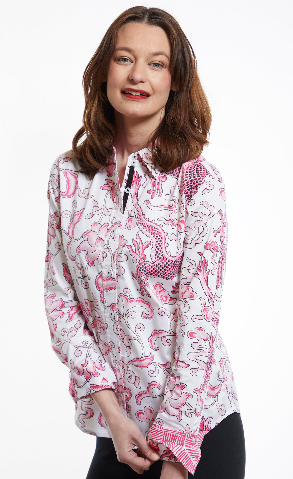3/4 Sleeve Rome Shirt Black and White Dragons On Voile