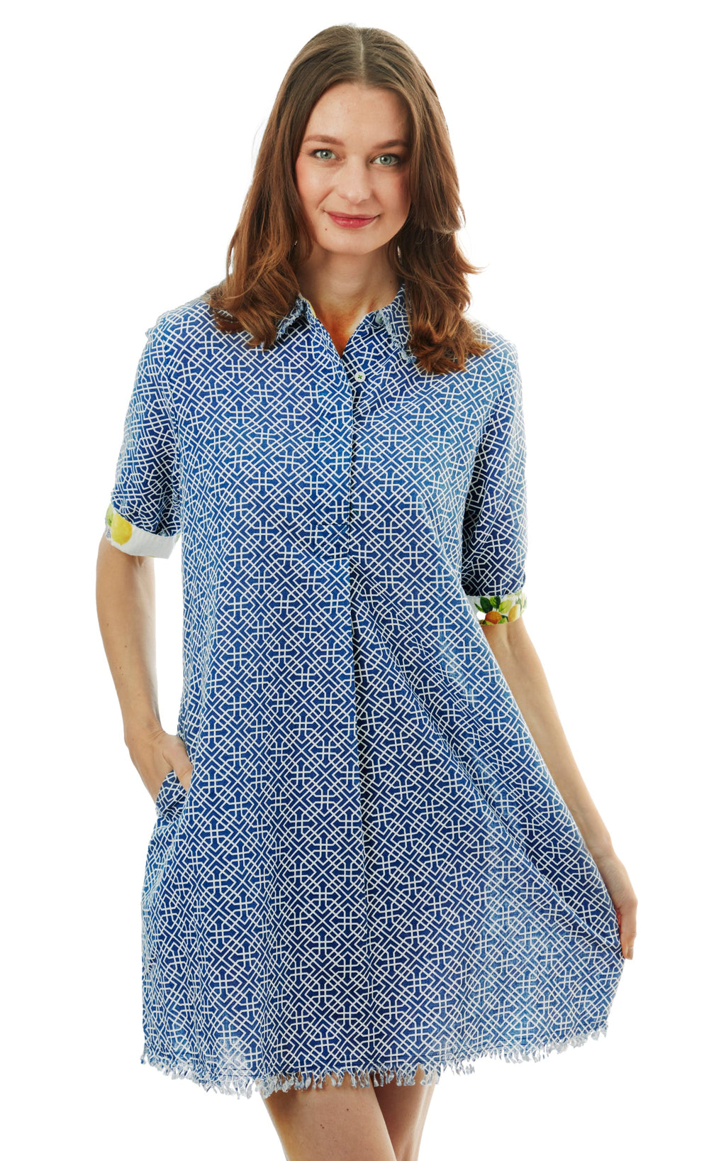Montauk Dress Light Blue Geo Print