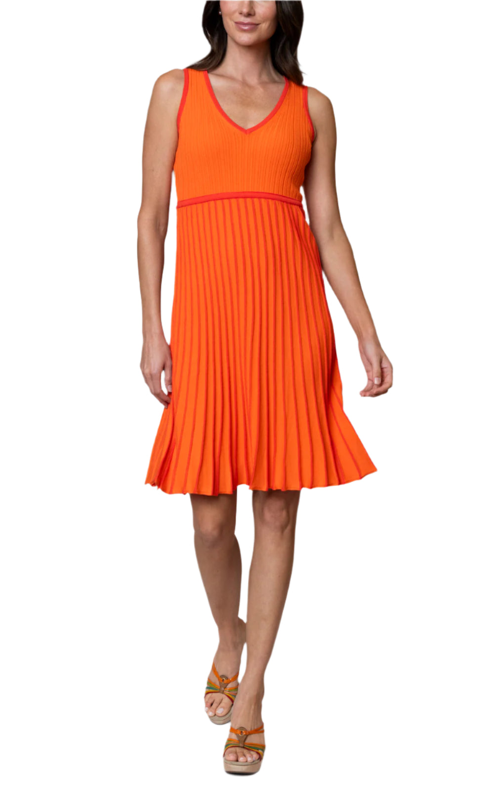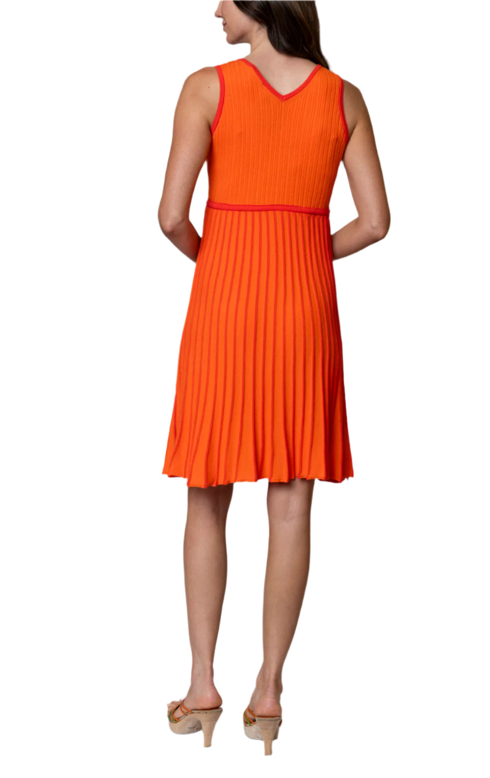 Lana Pleated Sleeveless Dress / Orange/Bright Orange