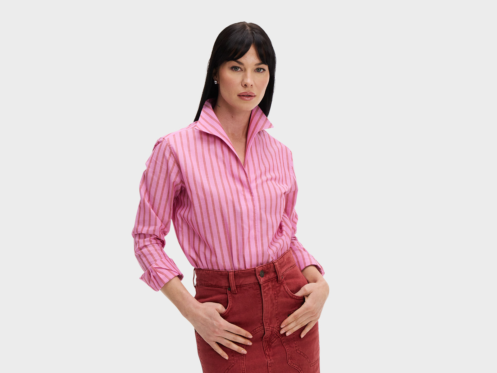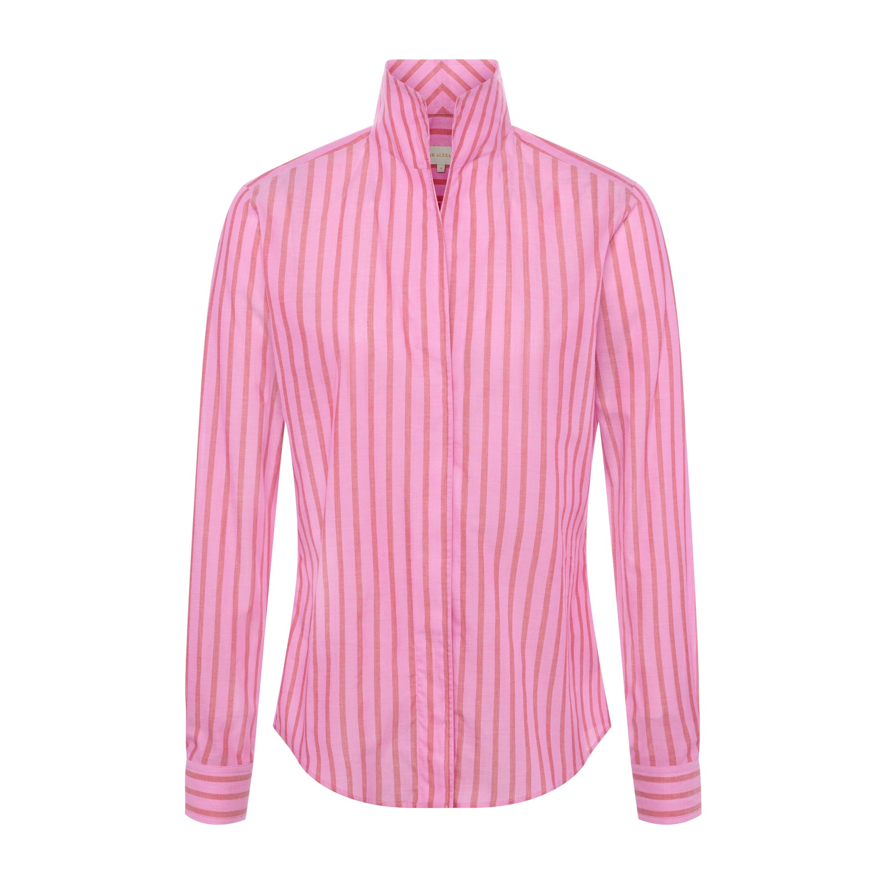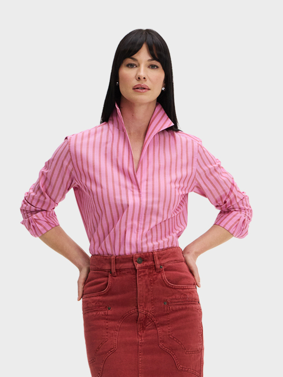 Our best-selling Signature Shirt in a hot pink and red striped cotton voile.