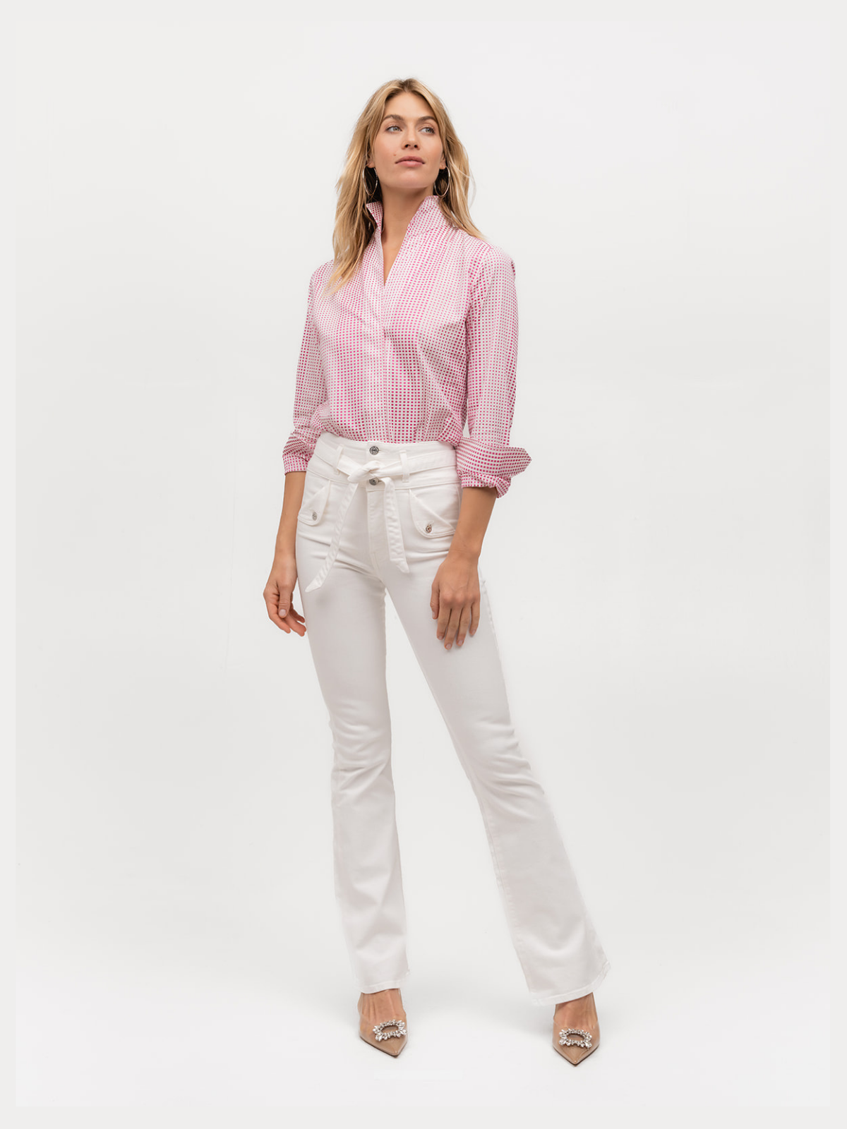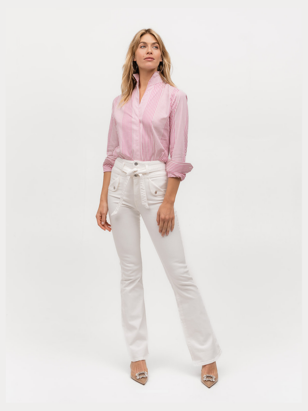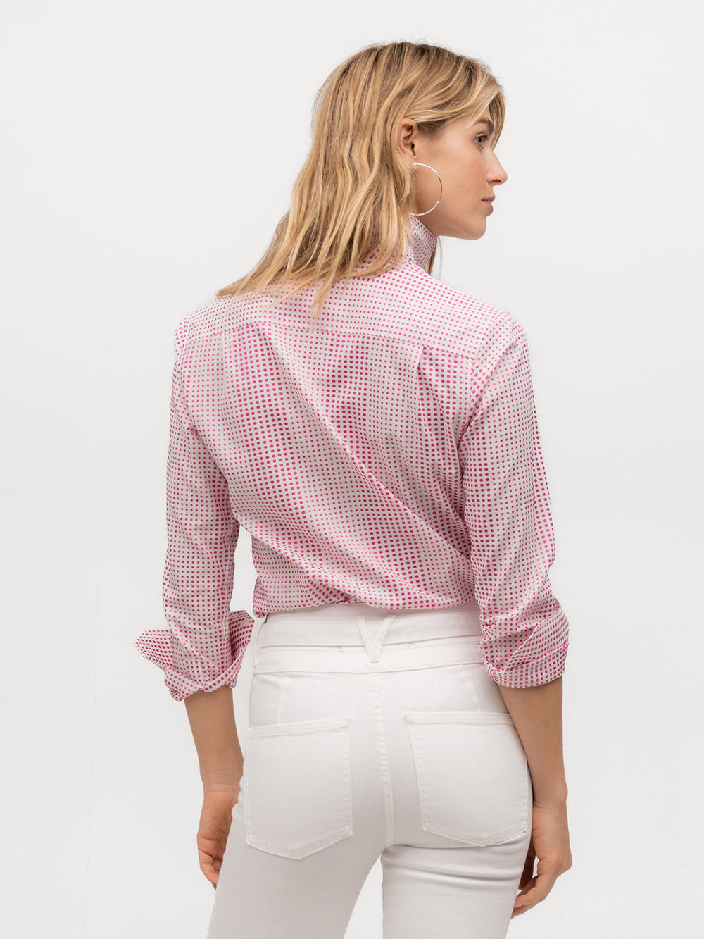 Our best-selling Signature Shirt in a magenta gradient polkadot dobby.
