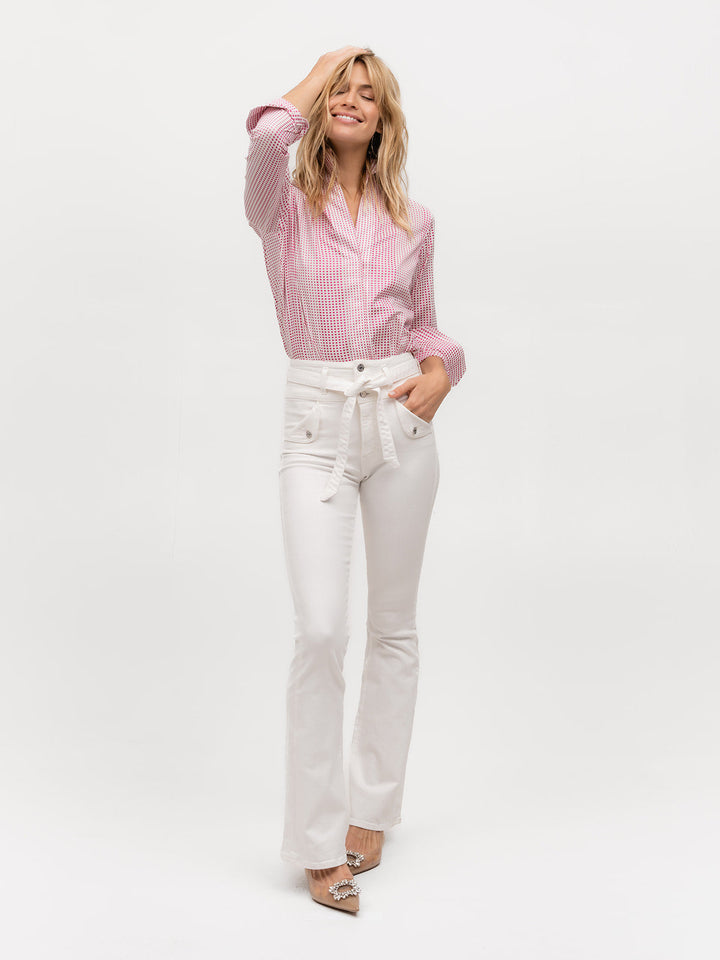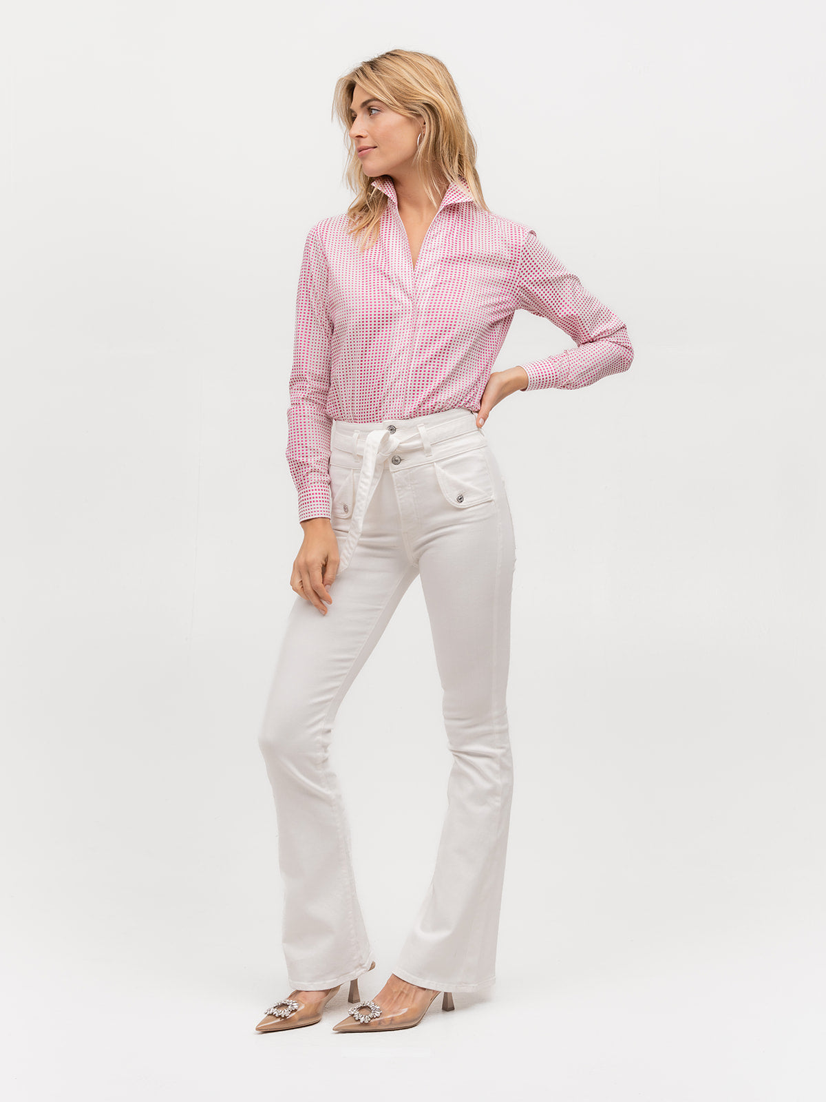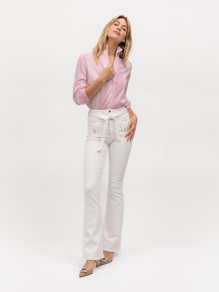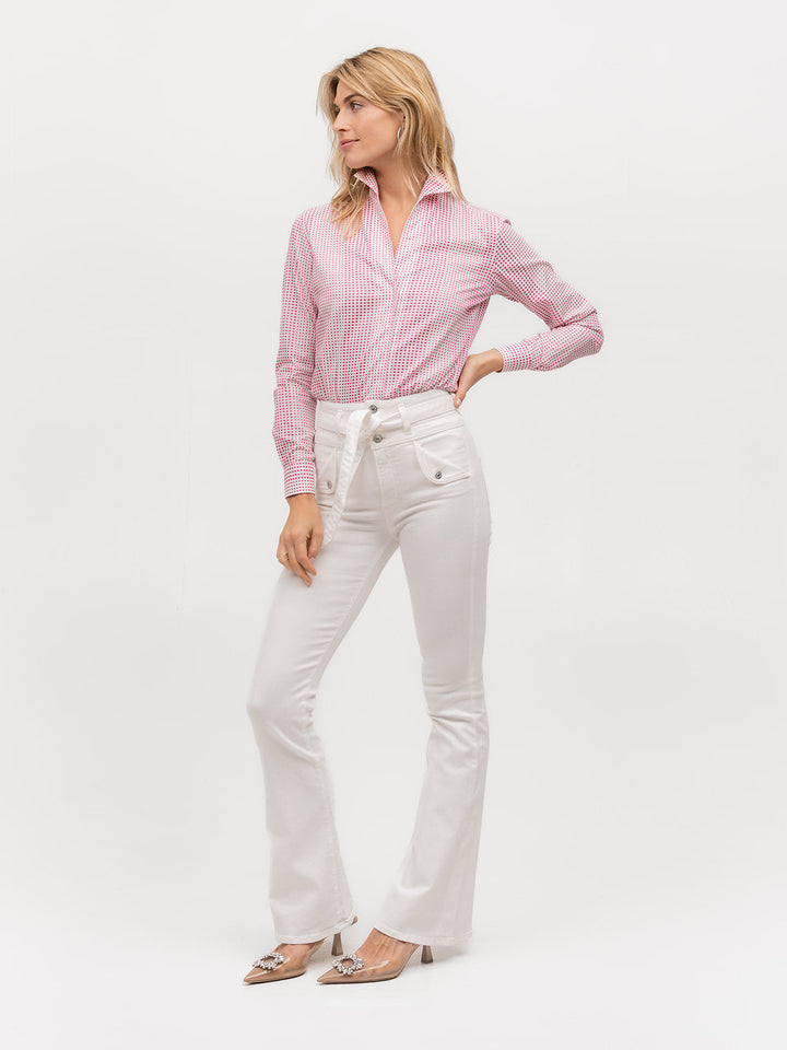 Our best-selling Signature Shirt in a magenta gradient polkadot dobby.