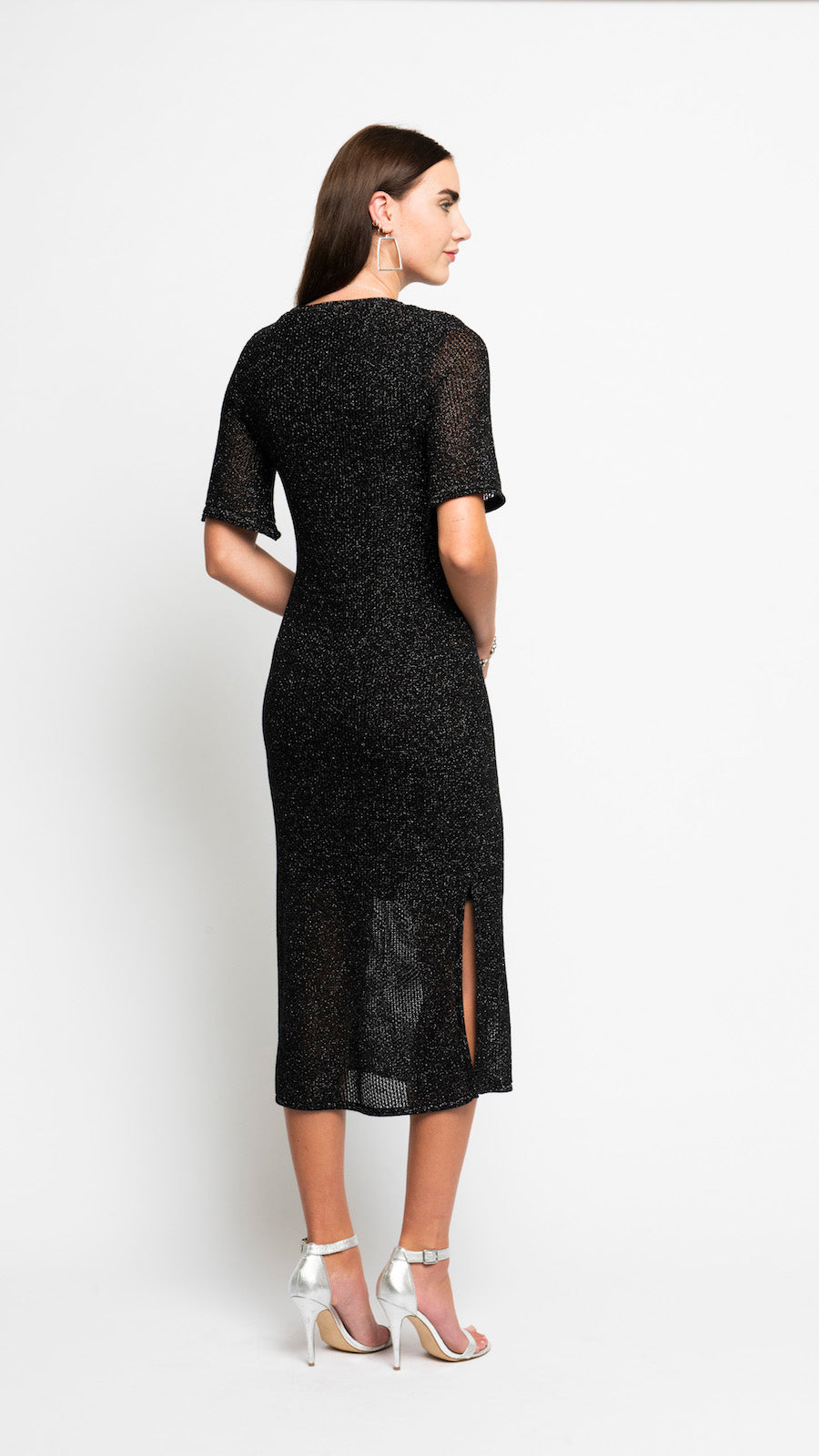 Long short sleeved dress with deep side slits and long short sleeves. Elongates the silhouette; Beautiful on top of any sheath or tank top/skirt set such as the Simona Dress, the CONTEMPO Bettina sheath or the CONTEMPO Clara tank top and Chiara skirt;