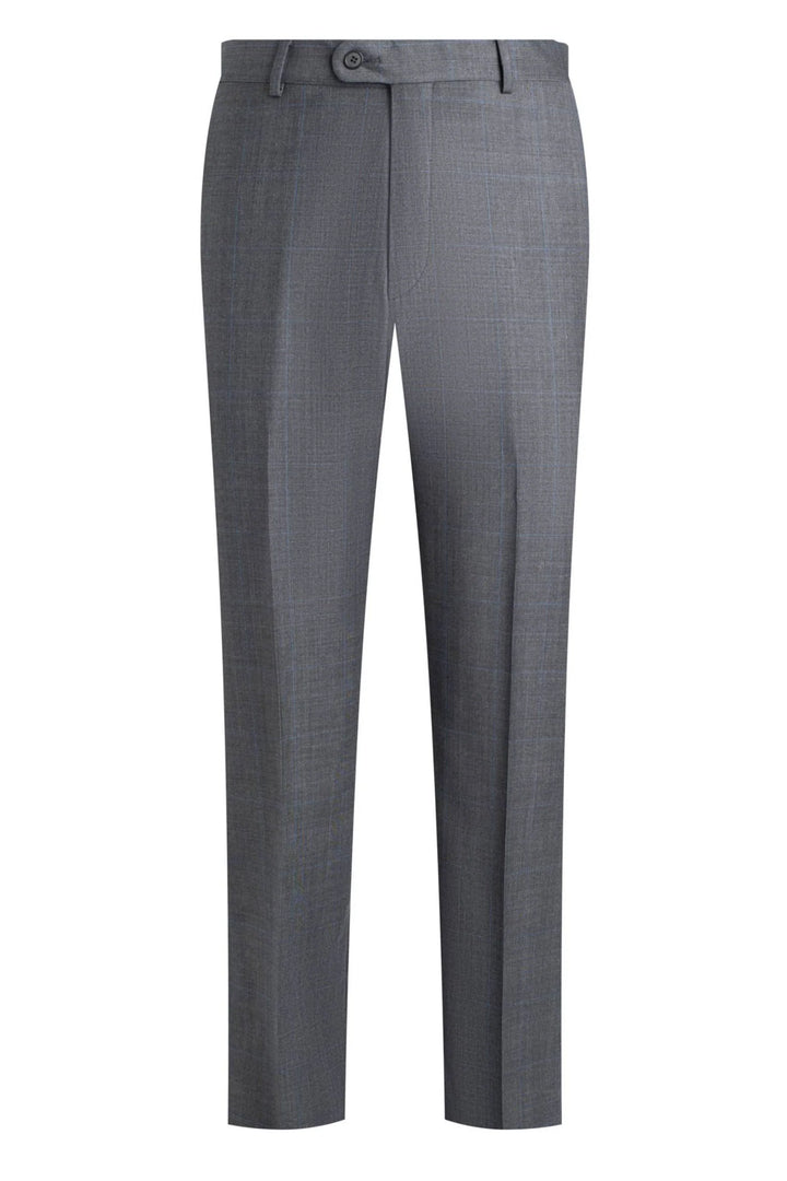 Experience a timeless look with this classic fit suit crafted from durable year-round weight Super 130s wool. Featuring a fashionable plaid design with a pop of blue, the fully lined jacket and half-lined trousers are designed for longevity and style. Elevate your wardrobe with this sophisticated suit!