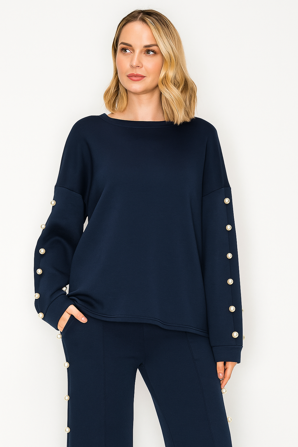 Katri Stretch French Scuba Pearl Top