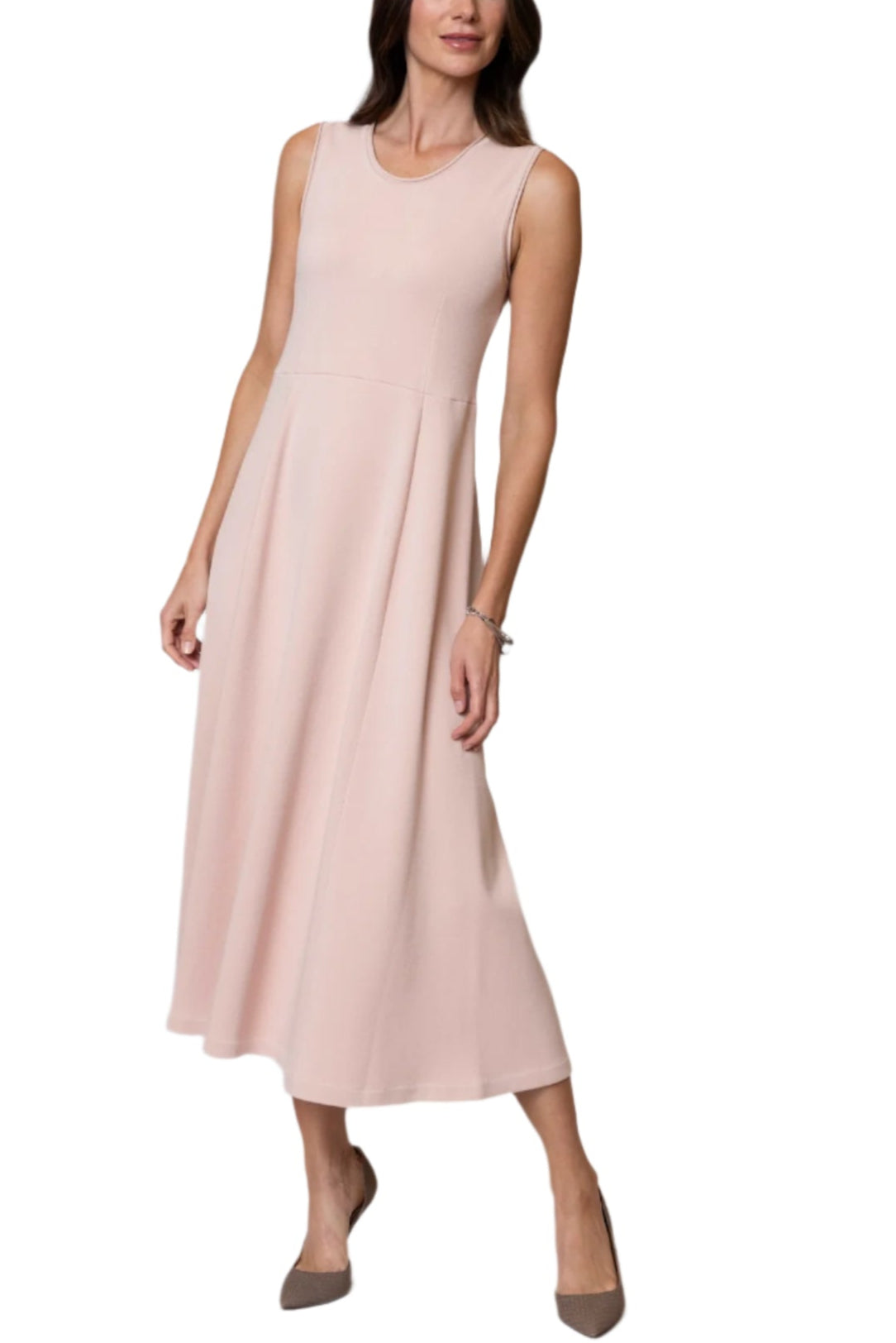 Maxi Sleeveless A-line Dress; Round neck;  Milano-knit; Made of high stretch supple viscose blend;