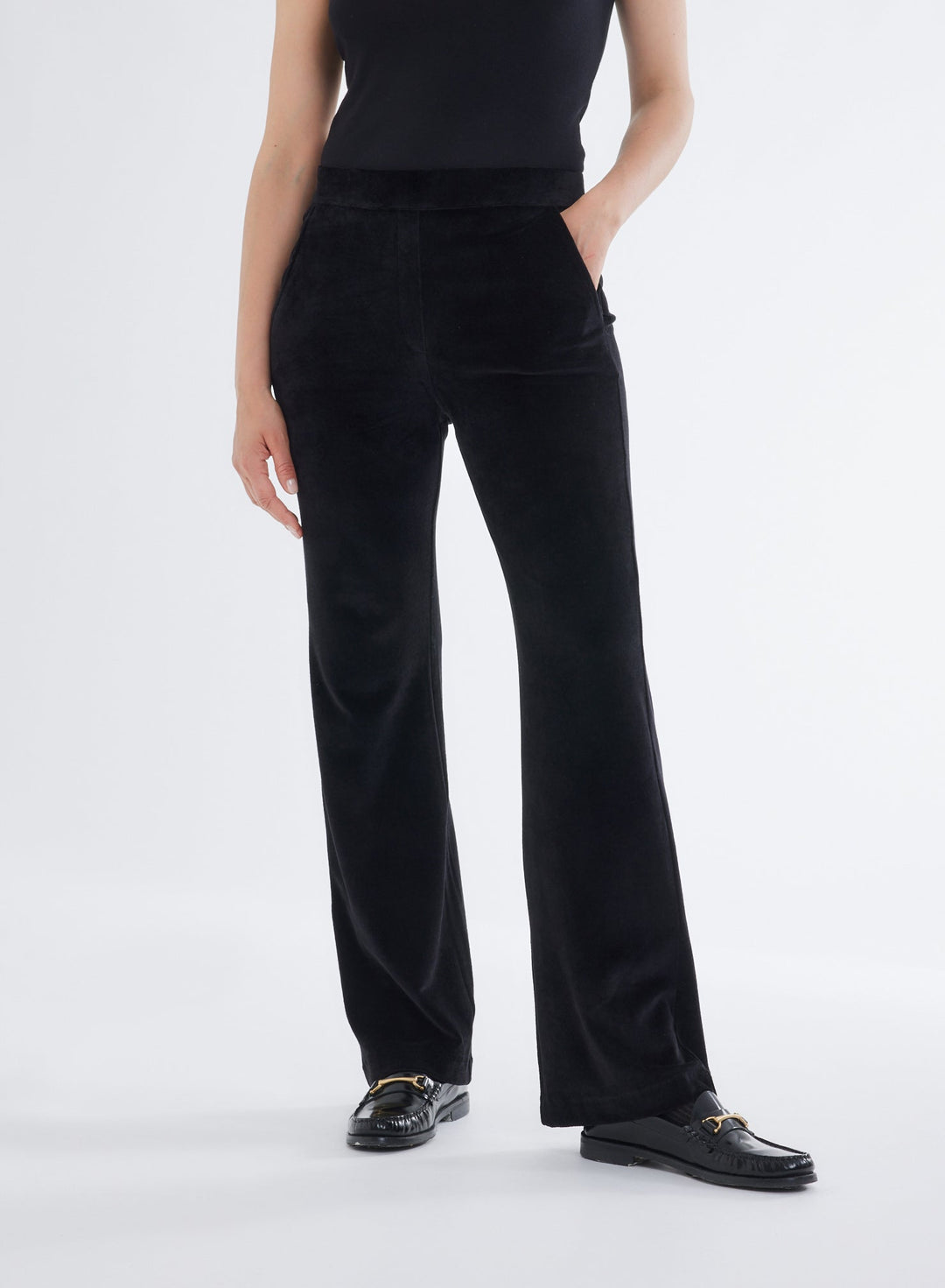 This velour wide leg pant features a semi relaxed silhouette with beautifully crafted detail. Our luxurious velour quality is a unique blend of cotton, modal, and elastane that features an ultra-soft, comfortable, buttery hand feel.