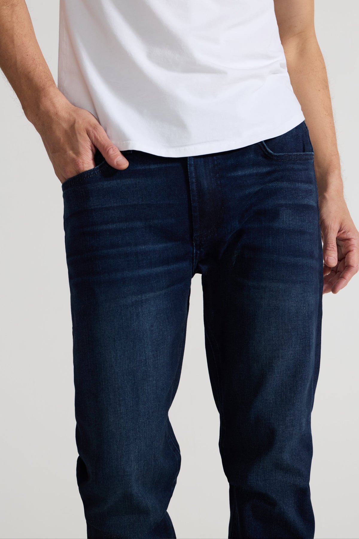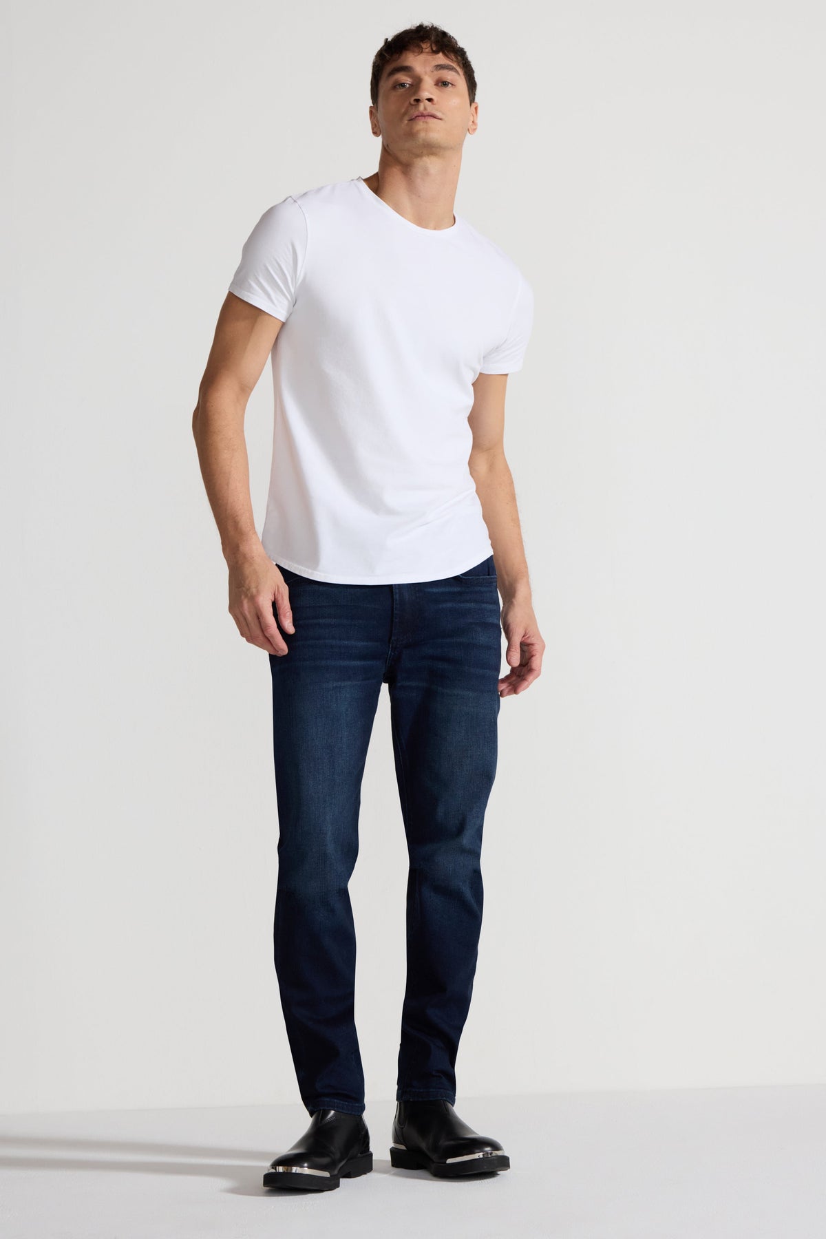 The Brando Vail represents our most refined slim fit offering, engineered from a responsive blend of stretch denim and twill that adapts to your movements throughout the day. This silhouette maintains its structured integrity while delivering exceptional comfort, making it an ideal choice for seamless transitions from professional settings to evening occasions. The fabric's inherent elasticity ensures a personalized fit that improves with wear, while the streamlined profile flatters without compromising mobility.