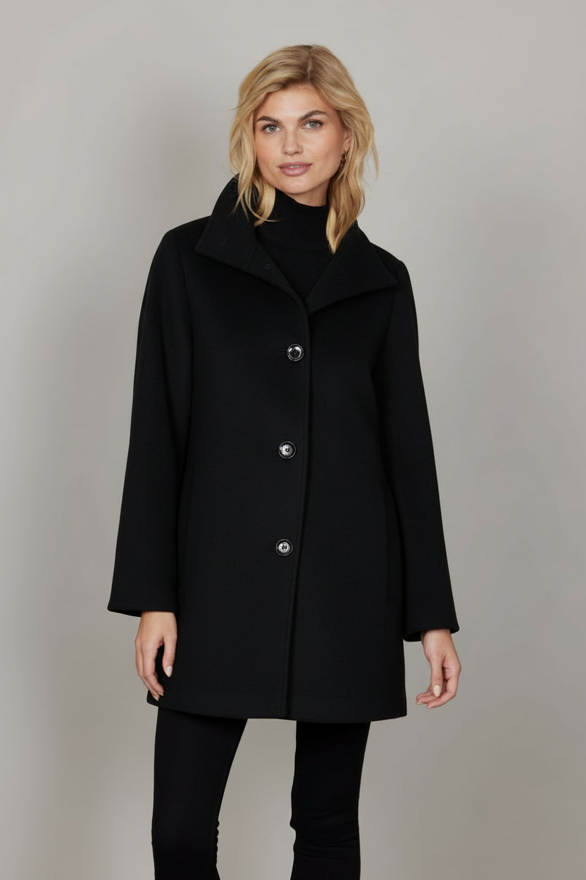 The Mille jacket exemplifies refined tailoring through its premium wool blend with luxurious velour finish. This sophisticated piece features a streamlined silhouette enhanced by practical design elements: front button closure, two generously proportioned front pockets with warm lining, and a secure zippered inner pocket for valuables. A contemporary side-slit detail at the hem provides both enhanced mobility and visual interest while maintaining the jacket's timeless aesthetic. Expertly constructed for those who appreciate quality craftsmanship and understated elegance.