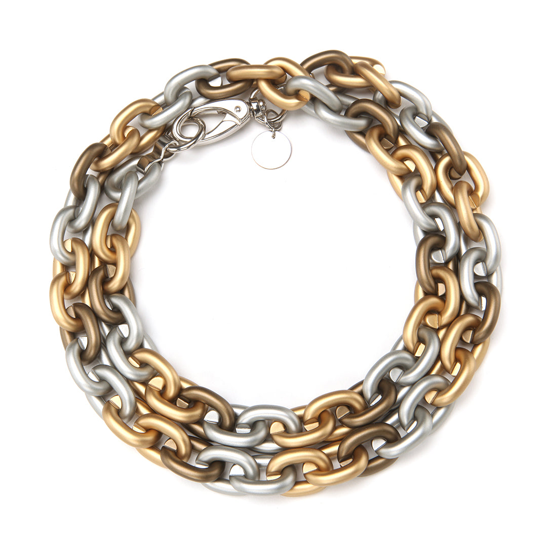 The Bike Chain has a chic edginess and may be worn either long or doubled.