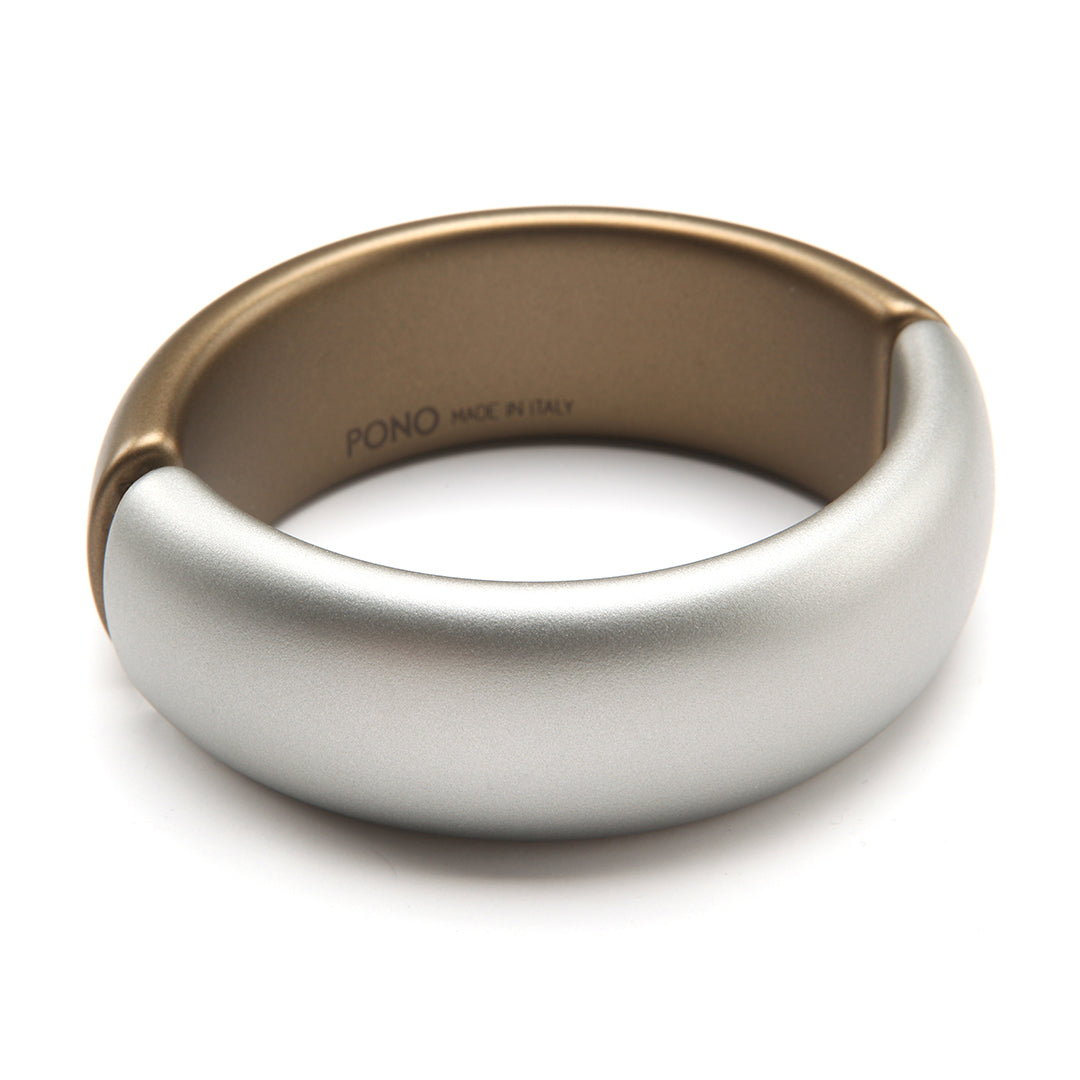This bracelet from the Alchemy Collection is made in Italy and features a two-toned matte metallic finish. The magnetic closure gives it a modern twist on PONO's classic style.