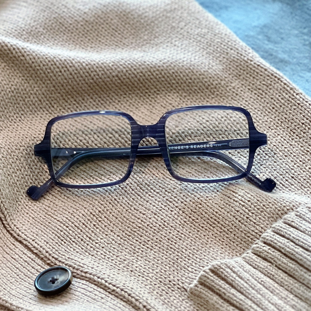 Fashioning distinctive acetate treatments and an angular shape that slims a full face, this style takes mid-century modern to a refined fresh look for effortlessly elevated style to even jeans and a tee. Light adapting photochromic lenses doubles usefulness as protective sunglasses when reading outdoors. Style smart with polish, purpose and convenience.