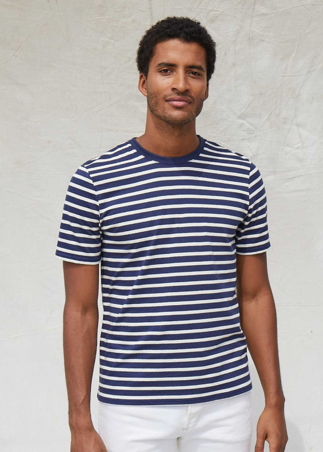 PLOUIDER - Breton T-Shirt for Men | Crew Neck | 100% Cotton (ECRU / NAVY)
