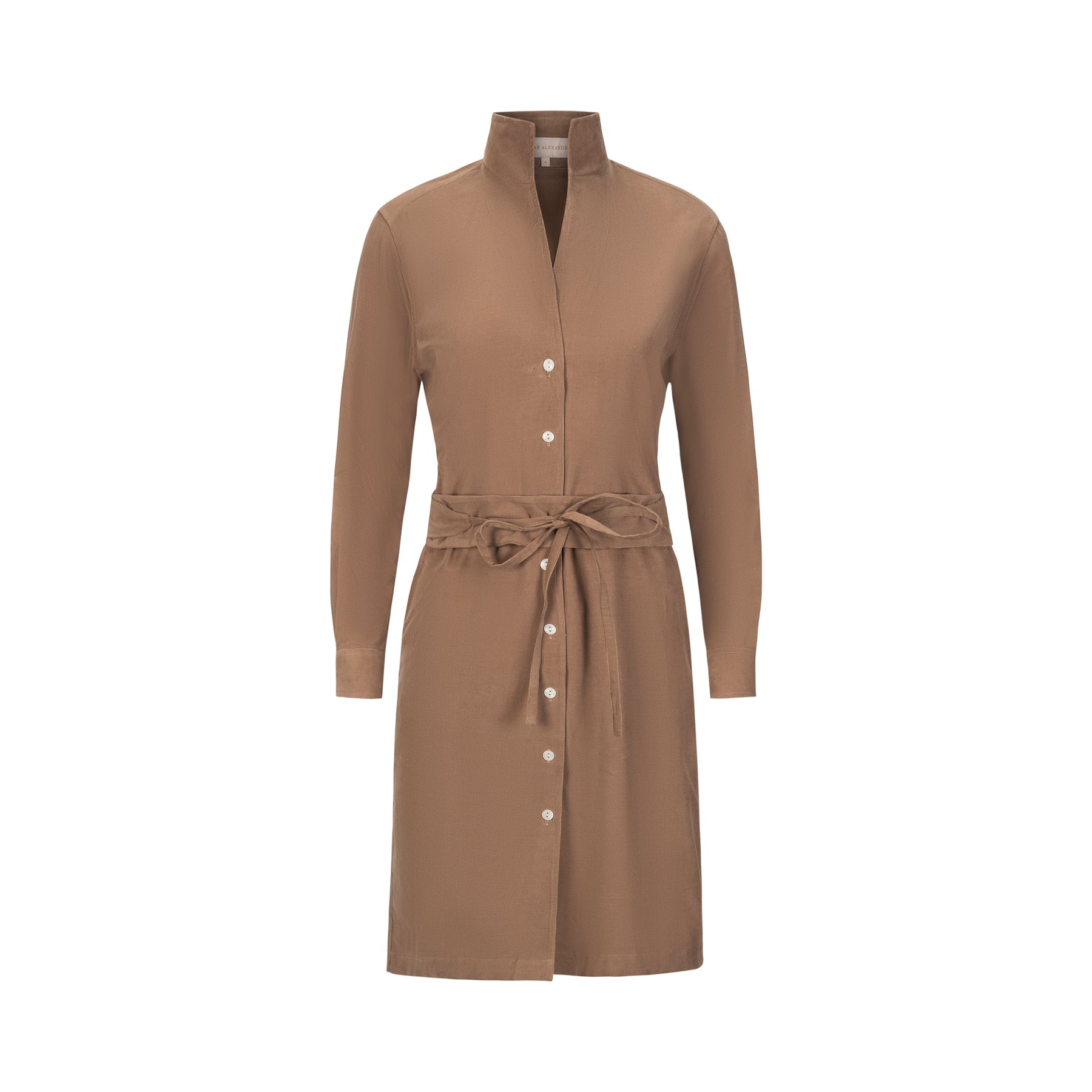 Our one and done Shirt Dress featuring our Signature collar in a khaki cotton corduroy.