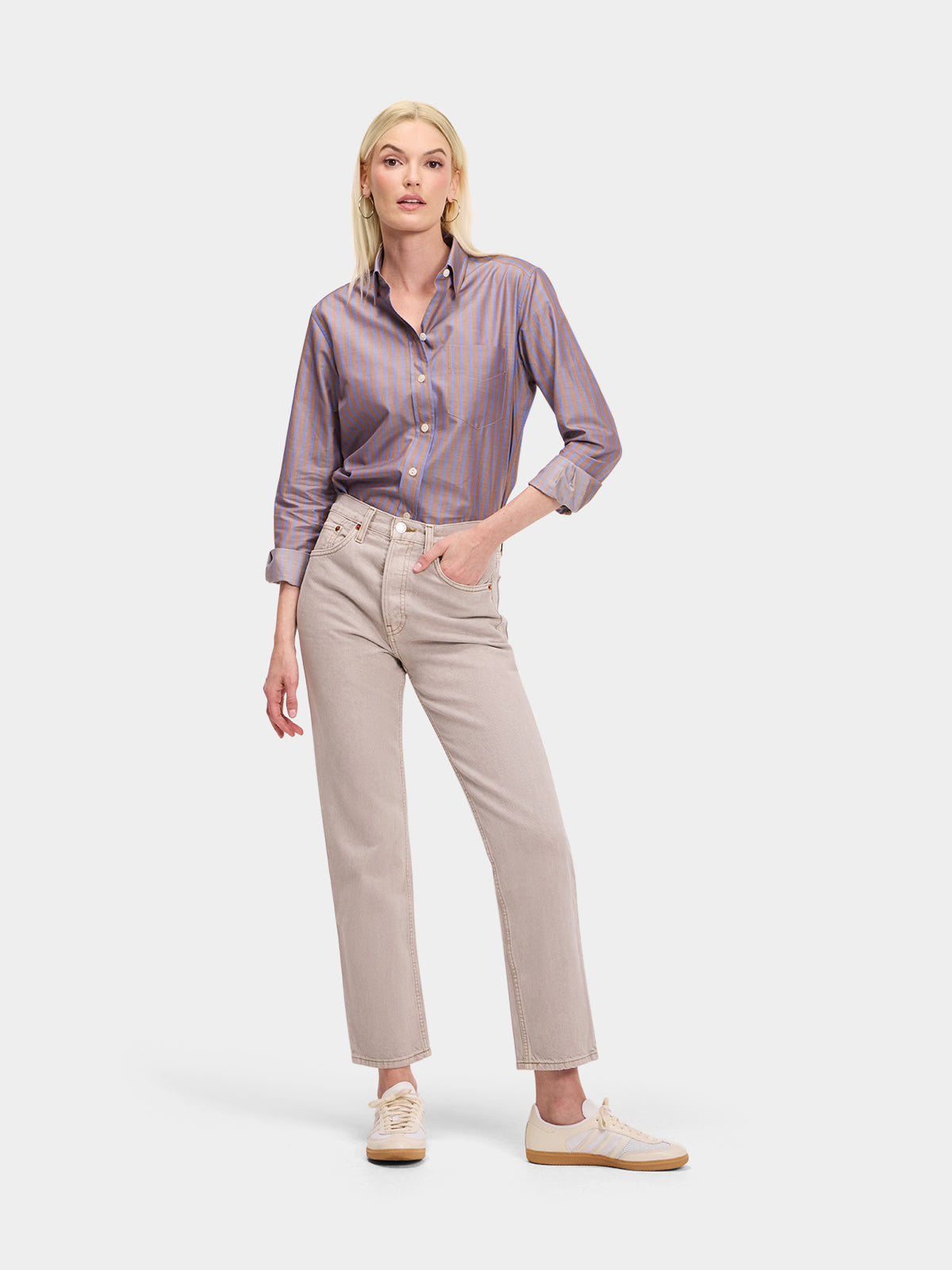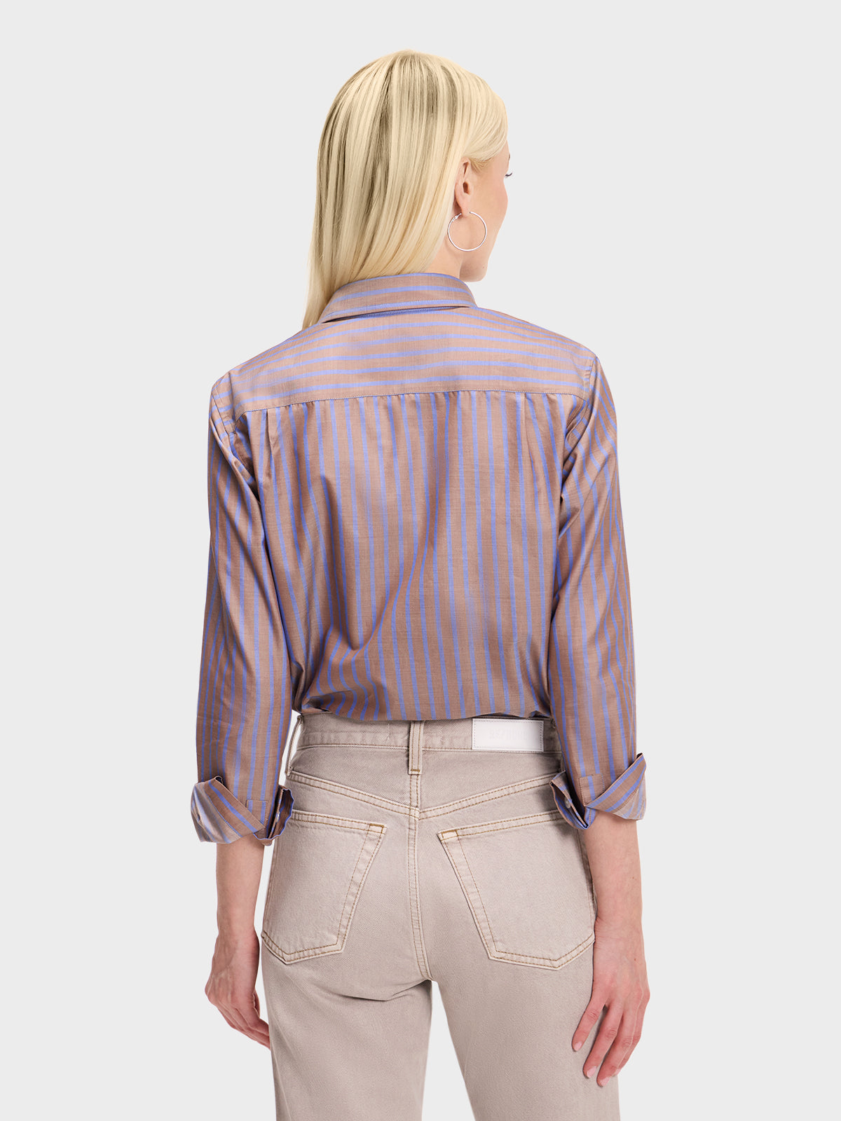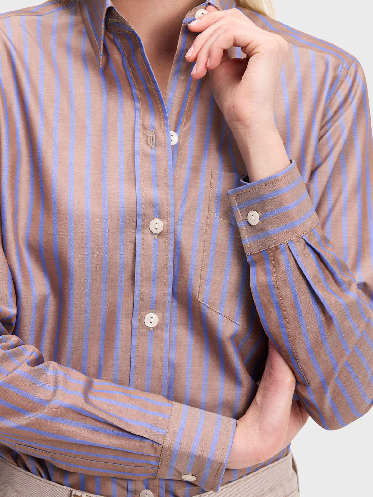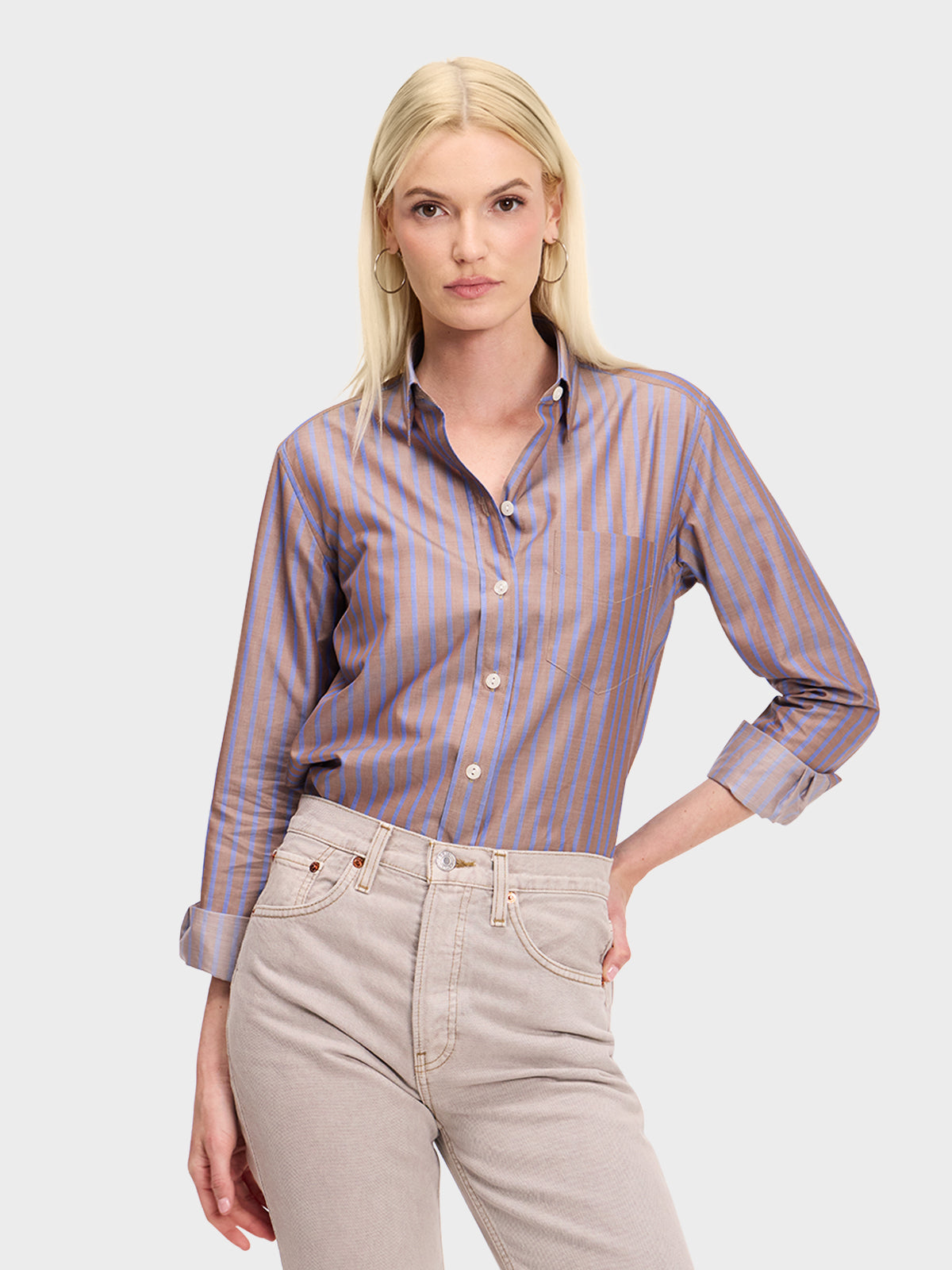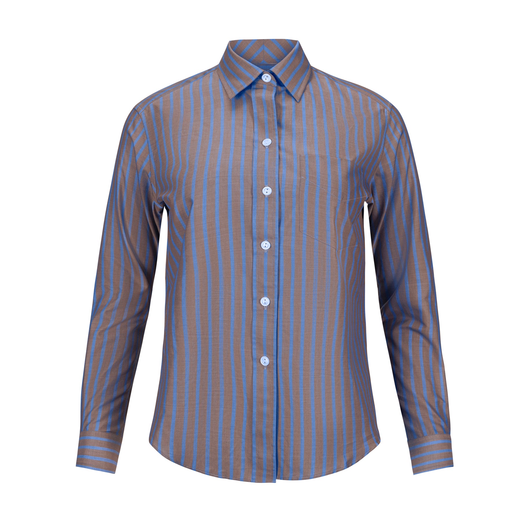 Our menswear inspired Weekend Shirt in a classic brown and blue stripe.